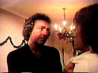 and Kate go out to introduce the Silly Santa. In the foreground, the figure in the grotesque mask stalks around with a