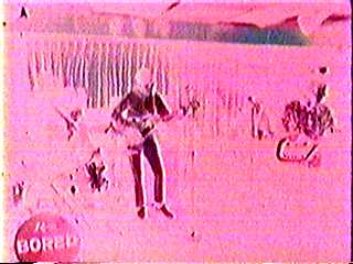 You Axed For ItCut to Wes waking in a bed as curtains open during the day. The woman from the night before is walking around in a low-cut nightgown and describing everything as matter as matter of fact to the disoriented dude. She pours him some coffee and introduces herself as Kay Jenson, RN (Charlotte Shite). Then she hops onto the bed next to him. While Wes feels over the glove graffiti on his face, Kay says she took him home, cleaned him up, and put him to bed. After giving him this quick recap, she leaves the room. Wes mumbles, "Things like this just don't happen." (Tell me about it. All those times I got rouged up outside a bar, where was my half-dressed, cleavage-laden sister of mercy?)He gets out of the bed, has a second thought, and crawls back under the covers. He asks for his pants. She's been cleaning them. He tries to work out the rest of the deal. He asks if he tried... "Uh huh," answers Kay. "Did I do any good?" The image freezes. The still image becomes part of a photomontage of Wes and Kay. They go to a nice restaurant, long walks, and build a romance. (As with most montages, we assume this is happening over a long period; however, only two romantic settings are shown in this sequence.) The last still lingers over the sound of chopping wood. Go to Wes, who is, well, chopping wood. (Note: He's not wearing a shirt in this scene. Not only was there a time when Mr. McRaney had hair, he was also built like a beanpole.) He stops to sharpen the blade. Agatha comes outside to check on his progress. He's been clearing out an area for a garden. He's not finished, but he's calling it a day because he's going to the beach. She wants it done now, but he refuses. Agatha's upset about this. At the beach, Wes and Kay are frolicking along the water. (To this film's credit, it looks more natural than, for example, the beach frolicking in The Incredibly Strange Creatures, etc. (1963).) After sunset, they're sitting by a cooler. She explains that she doesn't know anything about his family. She's met his mother, but what about his father…or his brother. At mention of brother, he has a Swirly Vision™. He calms down and goes to get some more beer. On his way to the package store, he passes a man chopping wood, and it sets off another Swirly Vision™. This time, though, the Swirly Vision™ is accompanied by flashbacks. Cut to a table in a dark room. There's a boy at the table. A shotgun spins, leaving a trail of afterimages. Cut to the boy at table again, followed by the view from the business end of a shotgun. It fires. Cut to a splatter of red. Back at the beach, Kay hears footsteps. She looks up and screams, "Wesly, no!" and gets a hatchet in the chest. She has a flashback of the time she met him. ("Good Samaritans," take note.) Wes stands over her and cries, "My god, what have I done?" He kneels down pulls the hatchet out of her chest, and cradles her. He cries and she dies. Zoom in on a red puddle in the sand. And cut to red liquid. In a bowl. Stirred by a spoon. An establishing shot shows Dr. Moss (Herbert Nelson) eating soup. (Frankly, it's not as disgusting as the dreaded "cut from a toilet to pot of stew" in A Christmas Story (1983).) A uniformed nurse comes in with a telegram. It says, Wesly held for suspicion of murder, fear that sickness has returned. He tells the nurse to cancel all his appointments; he's taking off for a week. (For those of us who don't live in Louisiana, which is where this story takes place, we would've figured there'd be too many mental cases for a psychiatrist to drop everything.) She reminds him about how much trouble he got into the last time he did this. In particular, he's expected at a seminar. He tells the nurse what they can do with their seminar. (We'd love to find a fault with this action. It sounds so terribly, terribly irresponsible, but dammit, this guy is likable.) Meanwhile, Wes is in an interrogation room with two detectives.