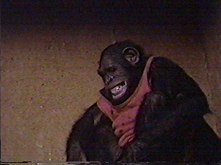 Out in the bush, the twins trudge along. Night falls. They stop walking and start to make a fire. A beautiful ball of light floats along overhead. (Or rather, somebody mattes another unconvincing cartoon light ball into the shot.) It drops to the ground and turns into Nukie. He walks to the small mound the boys put together for their fire while they tell him about their banishment. Nukie demonstrates his warmth by heating up the rocks in the mound until the fire starts. (Or rather, the filmmakers regurgitate E.T.'s trademark glowing finger trick with a poorly executed cartoon lightshow.) The alien asks the boys why they were banished. They explain how Sangoma was guided by the spirits of their ancestors, the ones who've died and gone up to the sky. Nukie says he's from the stars but never saw these mythological ancestors. "Liar!" shout the boys as they rip the evil, heretical demon to pieces and scatter the parts throughout the bush. No, sorry; that'd be another audience fantasy. Nukie tells the boys to go to sleep, but they don't want to. (We suppose it's because they think Nukie is really cool, not because they think he's as uncoool and untrustworthy as the average child molester.) But the cutesy alien tells the boys to go to sleep while he tells them the story of how they discovered sleep at his home world. (We suspect it coincided with the premier of The Postman (1997), but no go.) He presents this story as an interpretive dance (or rather, the small actor in the suit jumps around in the fog) wherein he reveals his true form (cheesy cartoon fireball) with a dazzling climax (stock footage of skyrockets exploding). (Put it all together, and it could be grotesquely Freudian. Maybe the boys will think Nukie is uncoool and untrustworthy after all.) Cut to the exterior shot of Space Foundation™. A narrator tells us the day, time, and lets us know that Carter is working on the EDDI (pat. pend.) computer. Cut...to...Carter working...on the...EDDI...(pat. pend.)...computer. (Feel...my...pain.) The computer interrupts the technician by saying, "You smell good." (Given Miko's previous interaction with EDDI (pat. pend.), we now realize that the alien is one of those illegitimate children of Captain James T. Kirk, who often broke computers by just talking to them.) After some conversation, the EDDI (pat. pend.) computer professes his childlike love for Carter. (Correct me if I'm wrong, but the when something like this happened before, didn't the computer kidnap and rape the girl?) Back elsewhere. At the village late at night, the locals are dancing around a fire. Nukie sneaks up on the party, and the boys are even sneakier nearby. (Weren't they supposed to be asleep?) Sangoma and company see the "bad god" and attack him. (Sorry, but saying "see the bad suit and attack it" is too derivative for even me.) A moment later, the alien is under a scrum of villagers. When they get up (guess what?), the alien is (guessed it yet?) gone (did you have to peek ahead?). However, a nearby motorcycle (where in the Honda did that come from?) starts up and rolls away. It runs into a jeep driven by the returning Corporal. When the motorcycle falls over, a ball of light flies away. (If he could turn into a ball of light, then why did he need the motor--aw, to Hell with it.) Cut to the exterior shot of Space Foundation™. A narrator tells us the day, time, and lets us know that the EDDI (pat. pend.) computer is analyzing data. Cut to the EDDI (pat. pend.) computer analyzing data by reciting 1's and 0's out loud. (What the hell is it doing? Loading a serial buffer one bit per second?) He announces that he's bored, so he calls for Miko. Out comes the alien. Miko asks the EDDI (pat. pend.) computer if he likes music. The computer says it doesn't know what music is, so Miko summons a delicate celestial melody. (Or rather, some atonal electronic crap starts playing. You can imagine Mike Myer's Dieter character dancing to it.) Dr. Glynn hears the sound and enters. The music entices him; the stocky middle-aged scientist strips off his jacket and dances. (Take a moment to imagine this horror. Alien takes over computer, atonal electronic music in a dark room, and a less-than-photogenic male starts dancing and stripping. On the plus side, b-movie experience suggests that a monster is about to jump out of the shadows and eat the scientist, but no such luck here.) Suddenly, Dr. Glynn admits that he has become a clown. (Nothing we suggest here can top that.) The EDDI (pat. pend.) computer says this is the circus. Dr. Glynn pretends Miko is a wild animal and leads him back to his holding area. (Therapy. We now need therapy.) Enter Dr. Rhinestone. She insults Dr. Glynn for his childlike