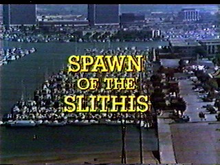 polster him. During the late '70's, Venice, California, picked up a reputation for superficiality. Natives of this area would probably disagree with this stereotype. But here's this movie and another instance of superficiality. According to legend, this movie had a freebie ad campaign. That is, you go to the movie and you get free stuff. In this case, you'd get a Slithis Survival Kit, which included a barf bag and a photograph of the monster. The picture was to ward off the monster. We suspect that for the average viewer, the picture found a home on a dartboard. And the barf bag? If you stuck your head into it, the movie would look better..