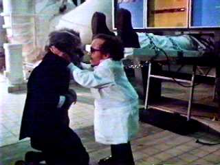 Dr. Kiss' face while the short scientist tries to hold him still for a