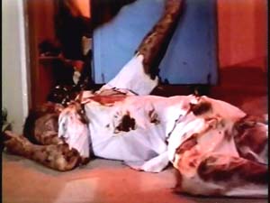 There’s a party montage of popping champagne corks as everyone celebrates the fact that the human race hasn’t been wiped out. The fashions on display are exactly what you’d imagine, especially on the women, and the music is Herb Alpert lite. Oddly, all the men are in uniform and the women in civvies. Don’t they have, I don’t know, jobs on the space station? Other than wearing cleavage-baring minidresses and doing the Frug with the men? Meanwhile, Rankin, Eliot and Lisa sit down so that the men can shoot little digs and generally try to out Alpha-Male each other. Of course, Eliot goes at it more strenuously, and heavily plays his one winning card, that he and Lisa are due to be married the following week. Yeah, well, I wouldn’t be putting any money on that proposition. Anyhoo, with the ‘character’ stuff all set up, we can actually get on with the point of the film. A technician is seen wheeling the away team’s spacesuits to another, presumably more powerful decontamination chamber. He starts the cycle, and the still unobserved organism starts growing, and glowing, at an extraordinary rate. At first I thought it a bit convenient that he was alone on duty when earlier the station seemed to be bursting at the seams with crewmembers. However, they have established the fact that most of the crew is celebrating, so I’ve got to give them that one. Then we *sigh* cut back to the party, where an uncomfortable looking Lisa is close dancing with Rankin. This finally allows for a bit more detail on the three’s backstory, although really, why bother? Anyhoo, Eliot had messed something up, something about losing the lives of ten men in an attempt to save one. The idea is that Eliot can’t make the tough calls when a lesser sacrifice is called for. Rankin reported this incident—as if no one otherwise would have inquired about ten men getting killed—and Eliot faced a Board of Inquiry. (Although he’s still the commanding officer on a space station, so it doesn’t appear to have hurt him much.) Again, Lisa seems to be arguing that Rankin shouldn’t have turned in a friend, which is a pretty gross idea, really. For his own part, Eliot stills carries a heavy burden of guilt and blah blah blah. Damn, where are those Green Slime monsters, already? Actually, it’s not Rankin’s tough-ass attitude that rubs the viewer the wrong way, or at least this viewer. It’s the fact that he’s a smug dickhead where Lisa is concerned, and that this doesn’t lose him her favor. (On the other hand, it’s not like smug dickheads don’t get girls, so maybe the film’s on to something.) In any case, he preens, "You don’t love Vince, you pity him," with a conceited smirk on his face. He will be proven right, of course, but how come the women in these things never end up saying, "You know, I don’t think I’ll take either of you"? Back to the Lonely Technician. (Finally.) Apparently something, although I couldn’t quite figure out what, is wrong. He opens the decom chamber door, there’s a burst of white light, and he screams. The party is then interrupted by a warning siren. Wow, a space station with a decent automated alarm system. What will they think of next? A crewmember arrives and reports to Eliot, explaining that there’s been trouble in the lab and that he may wish to personally see to it. Eliot takes his leave, ordering everyone else to carry on. Of course, Rankin and Lisa decide to just follow after him. At this point, Eliot should have resumed charge of the station. This means that Rankin shouldn’t do squat without his permission, much less disobey a direct order to stay where he is. And really, damn, just because Lisa’s the station commander’s girlfriend doesn’t mean she should feel free to gallivant wherever the hell she wants when the whim takes her. In the lab, Eliot is aghast to see banks of equipment smashed up. His mood isn’t improved when the security guard points out the technician’s corpse, which is both bloodily lacerated and charred. Dr. Lisa, having arrived, bends over the shredded and incinerated body and announces, "He’s dead." Yeah, thanks for the newsflash. "He has been electrocuted," she continues, which surprises Rankin, although again the body is badly charred. (And, you’d have to think, would smell like cooked meat.)