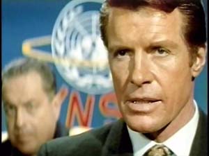 Second, we get one of the film’s authentic claims to fame, which is its psychedelic theme song. This tune wouldn’t be out of place in an Austin Powers movie, and is all groovy electric guitar riffs and heavy percussion and synthesizer sound effects. Although we don’t see any, you just know that girls in mini-skirts and adorned with body paint were standing in cages and doing the Frug as the tune was recorded. The singer, meanwhile, really gives it his all. His frenetic, throat-straining rendition of the lyrics reminded me mightily of something, and eventually I realized that it was the "Flower Power" audition song as sung by Dick Shawn’s hippie character in The Producers. It’s hard to communicate the magic of the tune on paper, so you might want to track down one of the various Halloween albums that features it. It’s great stuff. Back at Headquarters, commanding officer General Thompson looks at the data and bluffly opines, "The only answer is to blast that thing out of the sky!" Of course, he’s American, so that’s his first impulse, rather than trying to negotiate a peaceful non-collision treaty with it. Also, to be technical, you’d be blowing it out of ‘space,’ not the ‘ the sky’…or so one sincerely hopes. This seems an odd slip for a commander at the United Nations Space Command to make, even if he is a Yank. Time, though, is of the essence. Again, you’d have thought long-range telescope might have picked this thing up before it was mere hours from Earth, but again, I’m not an Astronomer of the Future. The General heads towards his private office, where one Commander Rankin is supposedly waiting, per orders. Hearing this name, a junior Expository Officer helpfully interjects that Rankin has recently tendered his resignation from Space Command. Thus, said officer argues, it is somewhat unseemly for the General to send the guy on what amounts to a probable suicide mission. (Apparently, in his opinion, Rankin would be much better off living it up on Earth for the remaining 12 hours before the planet was destroyed. Schmuck.) Per movie rules, the General responds to the objection by noting, "He’s the only man for the job!" Actually, he hasn’t said that yet, but I’m just guessing. And…I’m wrong. What the General actually says is, "He’s still the top officer in my command!" That’s completely different.