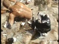 attacking the thing, tearing at it with his talons. (I would