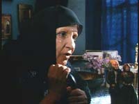 garb. Mournful violin music plays, lending a touch of, well,