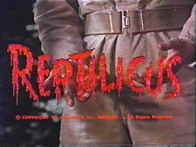 BACKGROUND :For a comparatively obscure giant monster flick, Reptilicus inspired an impressive number of offshoots. The most notorious was the aforementioned soft-core paperback adaptation put out by Monarch Publishing. Written under the house name of Dean Owen, films such as Konga, Brides of Dracula and Journey To the 7th Planet were also subjected to this treatment. These were surprisingly racy. For instance, during the naval bombardment, Svend Viltorft "was remembering Karen’s wanton seduction of him." His boss meanwhile, "looked at the girl beside him, wondering if he would live to enjoy Connie’s warm, vibrant flesh again." And that's just what was printed on the back cover. Inside, the contents included stuff like: "She stood still momentarily, letting him look at her perfect breasts...in a matter of seconds his clothes were strewn all over the room..." Let’s just say that in the film itself this sort of stuff remained, uh, more of a subtext. Although the Danish version was somewhat more frank, featuring footage, for instance, of Lise in her bra as she gets ready for a date with Grayson. The fine fellows at Stomp Tokyo, who are princes among men, by the way, despite their secret agenda of destroying anyone who has a site remotely like their own, have procured this novelization and promised to distribute copies. Once I receive mine I’ll post my thoughts on it either attached to this review or as a separate Nugget piece. Meanwhile, the guys over at Teleport City are sending out copies of the Danish cut of the film, wherein Reptilicus flies. As soon as I get this I’ll add stills to the review. And while I’m mentioning my comrades, check out the background info on the film posted at the Bad Movie Report site. Next there was a short-lived comic book series by publisher Charlton Comics. A lawsuit by producer/director Sid Pink against American distributor AIP delayed the film’s release in this country for roughly a year and a half. Therefore the comic came out before the movie did. However, presumably due to the lawsuit, the comic changed its title after two issues to Reptisaurus the Terrible. Except for losing his fangs and changing to a red hue, the title creature remained roughly the same. Meanwhile, let’s not forget the numerous cameo appearances Reptilicus made on The Monkees TV show. Whenever one of the boys opened a closet in a haunted house we were likely to spot the beastie trashing his familiar tabletop diorama of Copenhagen. Given the popularity of the show over the years, it’s possible that more people were introduced to Reptilicus via The Monkees than through the film itself. According to the estimable Christian Andersen, the beast also made his presence known on Parker Lewis Can't Lose. Meanwhile, our own Apostic calls to mind an appearance in an old Gulf commercial, in which a gas station attendant watches our title feature via the drive-in theater next door. Perhaps the rarest tribute was the recent publication of Reptilicus the Screenplay, as compiled by Kip Doto. Mr. Doto, who kindly gave me permission to discuss the contents of his book, has assembled the entire English language screenplay, the contents of the film’s pressbook, color reproductions of both the American and Danish posters as well as the American set of lobby cards, the covers of the Monarch paperback and the comics and even the ‘humorous’ Monster Laffs bubble gum cards featuring our subject. Other materials include behind the scene photographs of the various cast members, some in color, as well as photos of the actors who dubbed the film for AIP. We additionally get the lyrics for "Tivoli Nights," as well as the translated lyrics for Dirch Passer’s comic tune "Tilicus," which he sings to children in the Danish version. The most amusing item is the section of the Pressbook containing suggestions on how to market the film. Pressbooks supply theaters with ads and press releases to be placed in local newspapers. Also included in many older kits were way-out and frequently hilarious promotional suggestions. For instance, if you had booked Konga, they might propose hiring a guy in an ape suit to walk around town with a sign noting, "Konga is coming!" Other suggestions might be getting an ape from a local zoo to appear in the lobby, or perhaps the creation of a giant banana prop sporting a sign warning "Konga has been here!" Admittedly I made these up, but I’ll bet at least one of the above appeared in the Konga Pressbook. Here some unlikely suggestions include setting up reciprocal promotional deals with stores selling the paperback novel. (That must have been an eye-opener for the kiddies!) Meanwhile, ‘street stencils’ are suggested to create ads on "sidewalks, electrical poles [and] abandoned buildings." (!!) Contests requesting the longest list of English words that can be assembled from the letters in ‘Reptilicus’ are another option. I have to admit, it doesn’t sound like they worked very hard on this. How about a giant papier-mâché scale or fang? Or a vat supposedly containing some of his glowing green venom? The most interesting section of the book is an eight-page production history of the film, assembled from Mr. Doto’s personal research. Aside from knowing Sid Pink, Doto has traveled to Denmark to research the film. (!) He notes that there were in fact three versions. Two were shot by Pink in Denmark – one version in English, one in Danish. The casts were also different in a couple of cases. Meanwhile, Pink enjoyed extraordinary cooperation from the Danish military. Those scenes on a destroyer attempting to depth charge Reptilicus aren’t stock footage, They were shot for the film on an actual warship. Unfortunately, Pink’s English edition failed to make the cut with AIP. While his Danish actors did speak English, they did so in a singsong fashion reportedly humorous to the American ear. AIP, in the person of legendary schlockmeister Sam Z. Arkoff, demanded