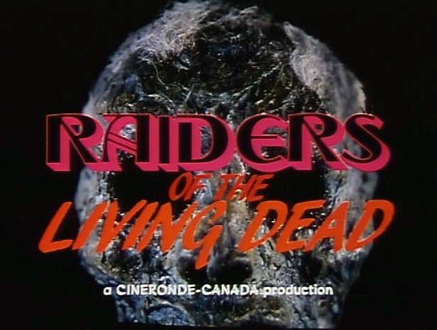 impressive achievement. ********** You have to appreciate a film that hits the ground stumbling, and this one does so with élan. We open with a really bad disco-y synth pop tune accompanying the familiar II (Independent International) Pictures Corp. logo. With house auteur Al Adamson not in residence, Independent International producer Sam Sherman himself shepherded this, er, film to, uh, completion, garnering writing and directing credits in the process. This, at least for those of a certain persuasion, this is a promising sign. Hey, if they can do for zombies what Independent International did for Dracula and the Frankenstein Monster…? The credits appear over that venerable Independent International trademark, crudely animated images from the film that appear against a black background. However, since we’re now in the ‘80s—in case the ‘Raiders’ part of the title didn’t clue you in—these are here accomplished with all the raw computing muscle that a TRS-80 could muster. Meanwhile, the theme music turns into (yes!) an actual song, with lyrics and riffs about you’d anticipate when a producer hires his nephew’s heavily Duran Duran-inspired garage band to score his movie: