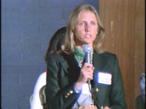 Anyway, they are able to test this device on a TV interview just then being conducted with the Governor. "And so it is your contention then, Governor," the reporter asks, "that the threat of exposure by the Freedom School television station [I kid you not, this is really what the interview is about] will in no way find any wrongdoing or kickback of this federal money ever touching the state capital.*" (Man, those Yoga English classes are really catching on!) "As God is my witness," the Governor begins, and we tune out, because it’s well known that only hypocrites and liars mention God. Hey, where are those Doritos? [*It should be noted that the reporter in this case is actually supposed to be a professional broadcast journalist, yet he still says things like, "…that the threat of exposure by the Freedom school television station will in no way find any wrongdoing…" Huh?] Somehow this proves the lie detector works, and the kids debate how to use their awesome new power. "Think of what this machine would do to Advertising Industry," one young lady gushes. "It would just blow it apart." This is true. Imagine the exposés: "Hey! Her hands are not in fact soaking in it right now! Quick, call the others! We’re marching on the corporate offices of Ogilvy & Mather!!" Seconds later, of course, another student suggests that they "get the tapes of the Watergate hearings and run them through this thing, and we find out the Truth." Needless to say, all of the other kids are blown away by this totally far out idea. Of course, with the Freedom School now threatening the entire stranglehold of power of, er, The Man, or whatever, the government twists the screws some more. No, they don’t cancel the school’s grants, because, uhm, anyway. Instead, now FBI agents start harassing family members of kids attending the school. Hmm. Maybe the kids should do television stories on that, rather than exposing stores that repossess your furniture if you stop paying for it. During this period, of course, Billy was still in jail. No one ever visited him, as he couldn’t stand to have them see him "caged up like an animal." Meanwhile, Jean held her breath for the entire four years, "hoping he hadn’t given them an excuse to extend his sentence or even kill him." The reporter muses over this. "So you really didn’t think they’d let Billy out alive?" she queries. "No," Jean replies. "Not even if they had to shoot him when he was going through the gates on parole." As noted earlier, they not only don’t kill Billy, they shave 20% off of his ludicrously lax minimum jail term for good behavior. Those fascists!! Unfortunately, Jean couldn’t be there to pick him up when he was released. You see, this happened on the very day that the Freedom School was hosting "our first international seminar on child abuse." I’m sure Billy understood, though, because The Cause in all its myriad facets comes first. "The kids had [three guesses] done an exposé on child abuse, child battery, and how widespread it is here in this country," Jeans explains (and explains, and explains…). "Pretty soon," she continues, "we were recognized as one of the few places that could successfully help parents who battered their children." Cut to Jean, in a weird, Annie Hall-esque man’s suit, showing a couple of child abuse experts around their facilities. During this tour we meet Danny, a young lad of maybe ten, who is in many ways the film’s poster child. Danny is missing a hand, and they nicely present the (real life) stump of his arm in a nice, juicy close-up.