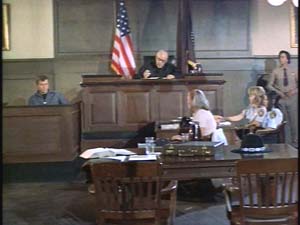 In the next scene, Billy’s back on the stand. I’m not sure how this alternating witness thing works, but anyway. His defense attorney leads him through his military service. It turns out, and I hope that you’re sitting down as you read this, that Billy served in Viet Nam, but was booted out after he tried to blow the whistle on a My Lai-type massacre.