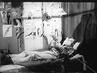 Inside, their handy man Him (Leonard Traver) is lying on a cot with a magazine.
