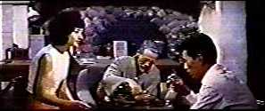 Elsewhere, Dr. Munakata (Nobuo Nakamura) is dumping diamonds into a dish. (This would be for people who find Grape Nuts too soft and chewy.) He gets up, goes to a window, and shouts to whoever is hiding out there to come to the window. Detective Komai (Yosuke Natsuki) reluctantly comes to the window. Dr. Munakata confesses he wasn't really sure there was anyone out there. Komai tells the elderly scientist that he followed someone to this house and asks to come in. While Komai comes in, Dr. Munakata looks at the dish. The diamonds are gone. Komai turns on a light and sees the toes of a pair of shoes peeking at him from under a curtain. The detective pulls back the curtain. Nothing there but the shoes; however, a European looking guy (Robert Dunham) leaps out from behind the couch. He claims to be a guest of the doctor, but then knocks out Komai with a surprise move. The gaijin grabs his shoes, apologizes to Dr. Munakata, and leaves. Outside, the girl from the earlier jewelry store robbery (hereafter referred to as Car Girl) is waiting for the foreigner. So are a few thugs. They "invite" him into a car. Back inside, Komai wakes up. The doctor's cute secretary, Masayo (Masayo), helps him. After a few polite pleasantries, they discuss the other guy. His name is Mark Jackson, and he claims to be a diamond broker. They talk about the earlier diamond robbery. A diamond ring, er, diamond robbery ring has been hitting several places worldwide. At the hideout of the diamond robbers, the bad guys discuss their failed theft and the weirdness during that event. Their unnamed, bearded big boss (Seizaburô Kawazu) decides the thing was some kind of trick. Enter Jackson at gunpoint. The big boss asks him who he is. Jackson tells him his name and trade (no serial number). The boss says there is no such person. Jackson says he's an unlicensed broker. They search him and pull out a big bag o' diamonds. Meanwhile, Komai takes Masayo and Dr. Munakata to police headquarters. He shows them pictures of the earlier robbery in town. The vault doors were melted like wax. During the conversation, Dr. Munakata tells Komai that he's a scientist and he's been working on methods to make artificial diamonds out of things like nylon and germanium. The ones stolen from his house were samples of his work. Instead of their value as jewelry, he's more interested in diamonds for their industrial use. Dr. Munakata and Masayo politely laugh at Komai when he doesn't get it. Back at bad guy central, they've figured out that the most they've gotten out of the evening is a bag of fakes. Jackson suddenly heads for the door while saying, "Guess I'll be going." One of the thugs knocks him out. The boss tells two of the thugs to take him to the garage for holding. Outside, Jackson jumps up and attacks the two thugs that were carrying him out. One of them realizes their prisoner was faking just before Jackson takes him down.