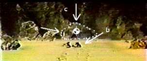 "I'm a young soldier." The End. The Good StuffUnique MonsterDogora's an interesting monster. Unlike most of the early stable of Toho monsters, neither direct atomic testing creates it nor do pesky aliens or an isolated civilization send it to Earth to make life difficult. It owes its origin to civilian applications of science (TV satellites) and those mysterious "pockets of radiation" high in our atmosphere. It may be correct to think of Godzilla and other mutants as personifications of nuclear bomb fears, but this is less applicable here. Also, the other Toho monsters resemble things the audience is already familiar with. Godzilla, Rodan, and Gorosaurus resemble dinosaurs. Ghidora is a variation on the eight-headed snake in Japanese myth. Mothora is a really really big bug. On the other hand, Dogora really does look alien. Hence the confusion many viewers have regarding what it's supposed to be. Squid? No, but many reviewers say it is. Jellyfish? Nope, but close. (We wonder how many people who've written reviews on this movie have actually watched it.) Who'd expect a giant cell with tentacles? You'd have to wait a quarter of a century before Toho would do something equally unique with a monster; see Godzilla vs. Biollante (1989). The closest thing as mythical precedent to Dogora that comes to mind are the weird creatures that dwell at the edge of the maps; back when this movie was made, our outer atmosphere was the edge of the map. However, there's a downside to this. See The Bad Stuff below. Special EffectsAs with any Toho giant monster movie, this one has some entertaining