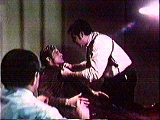 The next morning, Susan goes to a church. She pauses, but she makes up her mind to enter. She kneels at the front, and sees someone in a robe (with the face covered) go into one side of a confessional booth. Satisfied that someone is ready to hear her confession, she enters the other side and begins. She says her sin is sleeping with a man, and she asks for her penance. The caustic confessor stabs her through the eye with a loooong needle and runs away. (Apparently, this was back when the Church was less understanding about these things.) We see his legs and know he's wearing denim trousers. Back in the booth, Susan's not moving. Blood pools in one eye and runs into the other. Go to Susan's funeral. Wes, his friend Mark (Bert Roberts), and Wes' mother Agatha (Evelyn Hendricks) are there. Afterwards, Mark drives Wes and Agatha home. As they arrive, they see two boys roughhousing next door. Mark reminisces about being a kid, but Wes is not taking his own trip down memory lane. As Agatha and Wes enter the house, she tells him that he has no respect for the dead. As an example, she brings up his brother Jonathan. That tears him up. After he leaves, she says there's something wrong with the boy. She goes into the next room and shuts the door behind her. From the other side of the door, we hear her talking to her husband Carl. She tells him she doesn't know what to do. He tells her to calm down. Cut to Wes, sitting in a chair and wrapped in a blanket. He stares into space while rocking back and forth. Through a flashback, he sees a cemetery. He's visiting a grave while flash cuts show a figure at a table, with a child's voice. Later, Wes and Mark are at a bar. Wes is pretty messed up, both psychologically and chemically. Mark tries to get him to leave and go home. Wes breaks a bottle, holds it at his friend's throat, and tells him no. The bartender tells Wes he's had enough. Wes pulls out a big wad of cash and pays up. Just as carnivores will sense freshly spilled blood, several lowlifes sense the freshly flashed money. One of them picks up the bundle of bucks from the bar and checks it out. He puts it into Wes' jacket pocket. Wes leaves. While he's getting into his car, the greedy guys from