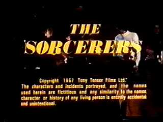 disappoint. The Who Cares StuffNotes on the Cast and CrewMichael Reeves (director, writer, producer) got his break into professional filmmaking by being a best boy for Don Siegel. After that learning experience, he took over second unit direction and some writing chores on the remarkably surreal Il Castello dei Morti Vivi [The Castle of the Living Dead] (1964). After making the disappointing La Sorella di Satana (1966, a.k.a. Sister of Satan, Revenge of the Blood Beast, and The She-Beast), he returned to England and made The Sorcerers with mostly his own financial backing. After The Sorcerers, Reeves made the well crafted and deeply depressing Mathew Hopkins: Witchfinder General (1968, a.k.a. Conqueror Worm). And that was that. He died from a drug overdose the following year. Could it be that the deeply focused loner named Michael Reeves wrote himself into The Sorcerers as the deeply focused loner named Michael Roscoe? You decide. Boris Karloff (Dr. Monserrat) needs no introduction here, and a thumbnail description would not do him justice. He was at the end of a long, popular career, such that he could even parody his gentle boogeyman image in things like Targets (1968). (Nitpicker's Note: Other sources spell the character's name as "Montserrat," but his advertisement at the tobacconist's omits that first t.) Catherine Lacey (Estelle) had bit parts in noteworthy movies like The Lady Vanishes (1938) and I Know Where I'm Going (1945). She also got some good parts in good movies, playing Mrs. Waggit in Whisky Galore! (1949, a.k.a. Tight Little Island) and Lady Mounset in The Servant (1963). Ian Ogilvy (Michael) was a longtime friend Reeves and a regular in his movies, culminating that association as the romantic lead in Witchfinder General . Most of his career has been playing photogenic, relatively innocent characters in horrible circumstances, like the man whose wife is raped by a ghost in And Now the Screaming Starts (1973) and the amiable, doomed Drusus in the I, Claudius mini-series (1976). People are most likely to have seen him playing Chagall in Death Becomes Her (1992). Susan George (Audrey) usually played the blonde vixen getting into trouble which she may have caused. In Straw Dogs (1971), her character teases a few local men and is gang raped; in Dirty Mary and Crazy Larry (1974), goes on a car chase odyssey of automobile destruction with Peter Fonda's character when she turns on the charm and he kidnaps her. Oh, yeah, and her character was more than friendly with the help in Mandingo (1975). (Note: We don't describe her character in the plot description for The Sorcerers, but let's just say it's in line with what would become her usual character type.) Alf Joint (Rob) was a stuntman and stunt coordinator/arranger in various features, including Superman (1978) and Return of the Jedi (1983). Paul Ferris (original music) laid down some nice, classy tunes for The Sorcerers, and he also composed a few memorable motifs for The Blood Beast Terror (1967) and The Creeping Flesh (1973). Patrick Curtis (producer) was a child actor within a year of his birth, standing (?) in as the baby of Nick and Nora Charles in Another Thin Man (1939) and baby Beau Wilkes in Gone With the Wind (1939). As he grew up, he continued playing bit parts. In the mid-sixties, he became a producer and made movies with his girlfriend Raquel Welch, like A Swingin' Summer (1965) and Fathom (1967). Tony Tenser (producer) managed the making of various
