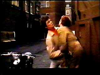 if Dr. Monserrat picked this moment to tune in, we are not told this.) The Sorcerer's ApprenticeThe next morning, Estelle brightly asks her husband about speed. (The velocity kind, dammit.) Dr. Monserrat doesn't seem interested because he lost the full use of his leg in a traffic accident. However, the thought of going really, really, dangerously fast intrigues her. The doctor is upset; he can see where this is going, but he doesn't talk his wife out of it. (Aw, c'mon, dude! Show some backbone!) Michael and Nicole are at lunch. He asks her when is her next day off. She says today. He suddenly announces they're going for a ride in the country. She asks him how. He says they'll use a motorcycle. Sure, he doesn't have a motorcycle, but he knows where he can borrow one. And so they go to the garage where Alan works. They get on the motorcycle parked out front. Michael starts it up. Alan and Rob hear it. (No, you joker! Not the ones over at Oh! The Humanity!) Alan runs outside just in time to see them leaving on his motorcycle. He verbally expresses his displeasure. (Heh. This is why God gave us chains and padlocks.) Cut to Michael and Nicole on the motorway. He speeds up. (Helmet law? What helmet law?) Nicole shouts for him to slow down. He's not listening. Elsewhere, Estelle is smiling. Dr. Monserrat unhappily looks down. Michael twists the accelerator harder. They fly past vehicles in the slow lane. Nicole buries her face in Michael's back. Then they fly off the road, but Michael has enough control to avoid dumping and scattering them both across the ground. Estelle smiles. Michael and Nicole return to the garage. Nicole jumps off the bike and leans against a car, face down. Alan comes out and reads Michael the riot act. Estelle says don't let him talk to you like that. Michael says, "Don't talk to me like that." Estelle says hit him. Michael slams his fist into Alan's midsection. Then he beats the crap out of him for a few minutes, causing much destruction in the garage. Rob comes up to stop him, but Michael takes him out with one hard blow to the head with a big wrench extender. Estelle smiles. Good boy, she says. Dr. Monserrat is horrified. He gets up. Michael looks around in confusion. He sees Nicole. She's terrified. He runs away. Estelle stands up, exhausted and exhilarated. Dr. Monserrat is horrified. His wife tells him they've just learned one thing for sure; her will is stronger than his. He tried to stop her but couldn't. He says she can't always win. He'll get the boy back to the lab and deprocess him while she's asleep. She laughs. Then she kicks the walking stick out from under her husband. He falls. While he's on the ground, she takes his stick to the lab and demolishes the equipment with maniacal glee.