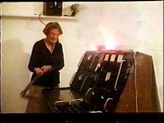 Dr. Monserrat and Estelle begin flicking switches. The room goes dark. Several weird, whistling sound effects begin to play. Light panels flash. The slide projector turns on. A psychedelic pattern flashes on Michael's face. The camera takes a few unusual angles and zooms. (In other words, this is "freaking out" before it became a fashionable late sixties/early seventies cliché.) During all this, the doctor and his assistant continue franticly flipping switches and twisting knobs on the control console. After a while, the high-tech hypnotists are satisfied with the