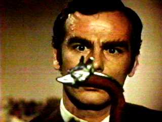 Back at Jack's place, Marion is setting up a romantic dinner. She walks out of the room to get something, so we are treated to twenty seconds of nothing happening. (Mind you, they're almost a pleasant twenty seconds….) Marion returns. While she's lighting some candles, Wolfman Jack silently enters in the background. She sees him, screams, and runs. She gets to the living room and picks up the revolver. He gets real close. Suddenly, the scene goes dark, and Marion shoots him in slow motion. (Helpful hint to filmmakers number 498: When you want a single shot go to slow motion, be sure to use a "fast" film and adequate lighting.) Enter the Attorney General, Salmon, and Dark Glasses. Wolfman Jack does the obligatory revert to Jack bit. Marion freaks out. Some extras help her out of the room. The others start to work on the cover-up. The story will be that Jack got in the way of a sniper's bullet that was intended for the President's daughter. The black reporter from before arrives. The Attorney General tells him, "Well, you won't have Jack Whittier to kick around any more." (Ah, but we will have this movie…) The End. Roll end credits over the White House at night. In a voiceover,