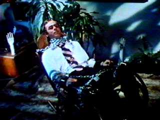 And Says His Prayers by NightThis time, the black screen is broken by a POV shot from inside a toilet. (And what an apropos shot it is.) Jack lifts up the lid, drops the charm into the water, and flushes. Cut to an establishing shot of Jack wearing a tuxedo in an ornate bathroom. He exits to a formal party. He passes by Martha Captree (Nancy Andrews), who is a bit drunk and ranting a few political views that would be embarrassing for her husband, Judge Captree.Jack enters another room and meets with the President (Biff McGuire). (Just as Chevy Chase would later play a president without trying to look like Ford, this actor is not trying to look like Nixon. Is this a bold move or a wimp out? You decide.) The President tells Jack that the Attorney General is too honest, so Jack will be working as the Attorney General's press aide. He also wants Jack to work on Martha Mitchell, er, Captree. She's been saying some things that might hamper Judge Captree's appointment to the Supreme Court. Then they finish it up with some small talk about the President's daughter and the Naval psychologist she's been dating. Back at the party, Martha continues to shoot off her mouth while wounding her husband's appointment. Jack is introduced to her. She gets cutesy with him. And then the President's daughter Marion (Jane House) enters. Martha asks if he was banished to Siberia because of her. Jack ignores it. Cut to an exterior night shot, and then back to the party. (Huh?) Jack is talking to Marion. She breaks it to him that she's engaged to Commander Salmon. In some footage elsewhere, the moon is rising. Jack goes back to Martha. He notices a crudely done jump fade shot of a pentagram on her hand. He takes her hand for a better look, which seems to be agreeable to Martha. The Naval psychologist Commander Salmon (Beeson Carroll) enters, introduces himself to Jack, and invites him over for a talk sometime. (Nitpicker's note: Salmon's rank is actually Lieutenant Commander. However, it is acceptable during conversation to refer to people with that rank as "Commander.") Later, we assume after the party, Martha staggers alone past some storefronts. (Those of you who are familiar with the crime rate in the District of Columbia back then will know how unlikely this is.) There are some growling noises, and it probably isn't the avenging ghost of Checkers the dog. Martha screams. The next morning, the Attorney General (Clifton James) talks to Jack about a commentator on a television program. He's upset because the commentator has been saying derogatory things about the President, and he wants to win back the hearts and minds of the people. (This is would be Nixon rhetoric. Oh, ha ha.) Then they shift to a speech, which Jack is helping him write. Jack looks over the draft, and accidentally suggests the word "impudence." The Attorney General likes the word and wants to use it. (Agnew rhetoric. Oh, ha ha.) The phone rings. The generic Attorney General takes the call, and tells Jack that Martha has been found dead with her guts ripped out. Cut to a shot of Martha with a throat injury. Later Jack goes to the White House. (Actually, he is seen in the same shot as the White House; both elements are not in focus together.) Inside, Jack runs into Marion. He says he hasn't been in the White House for a long time. (He's there now?) Jack goes to the Oval Office (or something like it). The President is talking to a news publisher (Jacqueline Brooks). He tells her he really wants Judge Captree's appointment, that it's necessary to avoid national anarchy, and that he'd appreciate some help on this. (Somehow, I don't recall anything in the Constitution about press publishers voting on Supreme Court appointments.) When she says she'll do what she can, the President offers to cut her a favor on an FCC matter. (I don't seem to recall this feature about the FCC, either. You sure do learn a lot about the federal government from this movie.) While she's leaving, the President makes a comment about her decision to banish Jack to Budapest. She explains that Jack wasn't banished. (Nothing is made of this clarification.) Jack glances at her hand and sees a pentagram. Jack runs down the hallway. Marion tries to stop him for some cutesy small talk. Jack evades her and shuts himself behind a door. She goes to the door and asks what's wrong. He pleads with her to run, but his line is cut off by a howl. (Strange. It was daylight in the last scene…) Cut to the publisher arriving at a gas station at night. She's