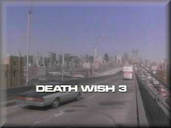 Jaws has influenced every big monster movie that followed, particularly the underwater menace movies. How many other films stole its greedy capitalists/politicians who wont close the beach/forest preserve/museum/festival/London Bridge (yes, thats a real one), etc., subplot? How many movies since Blade Runner have featured industrial fans (with light slanting through) as a design element on their murky futuristic sets? How many monsters have ripped off Alien? Has anyone done a soldiers searching for monsters scene in the last fifteen plus years that hasnt reminded audiences of Jim Camerons Aliens? How many chase scenes (and costumes) in post-apocalyptic flicks have, uh, referenced the Mad Max movies? How many serial killers back from the grave have there been since A Nightmare on Elm Street? And so on, and so on. Most Keystone Movies are horror and sci-fi movies. This is partly because a great many of these flicks get made. And most of them are made quickly and cheaply, conditions under which originality isnt often a requirement. But there are other Keystone Movies that fall outside the fantastic genres. Two of the most influential are thematically close enough that their respective cliches have been cross-breeding for years now (Jaws and The Birds have a similar relationship). I speak of Don Siegels Dirty Harry, which established about every roge cop cliché imaginable, and Death Wish, the Charles Bronson starrer that established the Vigilante film. After all, the plots are fairly similar, except one features a cop killing criminals, the other a civilian killing criminals. Death Wish was the story of Paul Kersey, a successful and politically liberal architect. His life abruptly falls apart when his family is beaten and raped by street thugs (including a very early role for Jeff Goodblum). His wife dies and their daughter ends up in a coma. Kersey loses it and takes to the street, luring muggers into secluded locales and blowing them away. Unsurprisingly, in an era of rampant street crime, he soon becomes a public hero. The cops, on the other hand, resent the competition. In the end, the police uncover Kerseys identity and offer him a deal: Leave town and his secret is safe. This sets up the four sequels. Kersey travels from town to town, and inevitably is forced or talked into taking up arms against the scum. As is usually the case, the first film is both stronger and subtler than those that follow. In the original, Kersey is physically and emotional vulnerable. After his first encounter with a mugger, he runs to his bathroom and throws up. As well, he arms himself with a simple revolver, while in the later films he leaned on increasingly outrageous ordnance (as we shall see). The first movie was also as interested in the political and social ramifications of the situation as with the pandering onscreen violence. However, the series doesnt follow one general rule of sequels, which tend to get progressively worse with each subsequent flick (see the Jaws and Halloween series). In this case, the third film is by far the worst, so bad that the following pictures almost had to get better. Oddly, the last film in the series, Death Wish 5, is probably the second best of the lot, after the first film. This was disappointing for those of us who expected the horrendous level of the third film to be sustained in later sequels. This included my friend Andrew and me, who eagerly rushed to the theaters to see Death Wish 5. We immediately grasped its relative competence and groused for much of the rest of the picture. No such worries here. We open with Paul Kersey returning to New York City, from which he was exiled at the end of the first movie. However, the production of the Death Wish series had been taken over by the small, independent Cannon Group. So in accordance with new economic realities, Kersey comes back not by plane, but by bus. And not just any bus, mind you, but noticeably a Trailways bus. Boy, that probably knocked twenty or thirty bucks off the budget. This piece of product placement accomplished, we cut inside to see the notably aged Charles Bronson. Chuck was 64 (!) during production of this film. We also cant help but notice the movies, uh, eclectic theme music. It starts out like a generic 70s blaxploitation theme (although about ten years too late). Then it segues into a jazzier piece, more like the theme from the Alice TV series. As a special kick in the gut to rock fans, it turns out that the films laughable score was composed by none other than Led Zeppelins Jimmy Page. And unfortunately for us, the song remains the same for the rest of the picture. In any case, the filmmakers have an entire hour and half to fill up. So they blow nearly four whole minutes with this Trailways bus driving through New York footage. Not only does this get us off to, uh, an exciting start, but it helps (sorta) to disguise the fact that the bulk of the film was actually shot in England (!), filling in for New York City. We cut to a barren, burned out portion of New York. We immediately see the kind of gang members that one seldom sees outside of comic books and B-Movies: scruffy looking, yet oddly well scrubbed; attired in quaintly generic punk clothing, featuring much torn but always new looking leather and denim adorned with the occasional Iron Cross medal; hideously dyed and radically cut hair that is nonetheless immaculately shampooed; and, of course, gang membership of an oddly multiracial composition. We watch one such hooligan run into a dilapidated building. He begins to beat on an apartment door, luring Charlie, the sixty-ish resident, to poke his head outside. Two more punks then sneak through Charlies back window and grab him. In an appearance that rates a solid two (out of ten) on the Embarrassed Actor Scale, we recognize one of the punks, Hermosa,' to be Alex Winter, Bill of Bill & Teds Excellent Adventure fame. I considered awarding the blond haired and extremely pale Winter an extra po