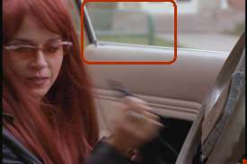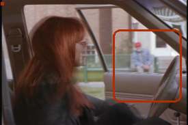 [ Editor Ken: Actually, it's more mysterious than that. Bako is in the car, and the bench behind her is blurry but without doubt sans occupant. She bends over for a second, and when she comes back up, a guy is sitting on the bench. Continuity gaffe or proof of teleportation? You decide! And now back to our review...]