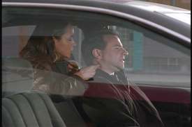 Some cars parked next to each other by some big cement things. Seriously, that's as descriptive as I can be. People get out of the cars ... random people from the green one, and our walking dudes from the white one. Slick hair guy opens his silver briefcase to reveal frosted Lucky Charms ... no, it's money. He gives some money to the random guys while Grieco watches with an expression that says, "I'm a bad guy watching money being exchanged." Only half the money is transferred. The rest must have been just in case they got hungry or the taxes were higher in Big Cement Thing County. Everyone involved looks around suspiciously, so that we don't think this is a charitable donation to the Big Cement Thing Foundation. Why did the exchange take place? We may never know, because... Bako's driving her stolen car very quickly through a parking garage. How dangerous! She looks around suspiciously so that we don't think she's just finding a good parking spot. Why is she in the garage? We may never know, because... A guy sits on a bench. Why does the guy sit on the bench? We may never know... Walking dudes pull up to a hotel. Grieco grabs the duffle bag with half the money in it, and we get our first taste of real dialogue. We also find out Grieco's name is Frank. I'm calling him Grieco anyway. So here's the Oscar clip: Slick Hair: Hey Frank. Want some free advice? What have we learned? Well, Grieco's name is Frank. These walking dudes are in another town. Grieco likes to sleep in. Why, will they leave any plot hole unsolved? Grieco enters the hotel lobby. Then he turns around to make sure Slick Hair is gone, and walks back out. That scamp! I just know he's going to do something scampy now. What is it? We may never know, because we cut to... The random guys' green car parked somewhere else next to a black car. Random guy exchanges the silver briefcase for a much nicer leather one, and the two cars drive off. I think we're supposed to assume the leather briefcase is full of drugs. Personally, I think it's full of frosted Lucky Charms. In any case, the black car has the silver briefcase with half the money now. Why? Because... Whoa! The dude who sat on the bench stood up! And crossed the street! Why? Because... Whoa! Bako is still sitting in her car! Bench Guy peeks around the corner. The black car comes down an alleyway. Bench Guy waves at the camera. (Hello, Bench Guy!) Bako adjusts her seatbelt. Bench Guy keeps looking around the corner. Black car keeps driving. Bench Guy whistles at us. (Why, thank you, Bench Guy!) Bako looks up and guns it. Turns out the parking garage is next to the alley, and she gets out just in time to cause an accident. Ah, it all comes together. Bako gets out and, er, improvises some lines about being upset over the accident. The two heavies in the black car look at each other, affirm that confronting this crazy bad actress couldn't hurt, and get out. Bench Guy is nonchalantly leaning against a nearby wall. While the bald heavy is dealing with Bako through some bad improvisation of his own, Bench Guy sneaks around and shoots his partner with a silenced gun, then gets in the back seat. Now, I don't know how sophisticated silencers are in Canada, but given the fact that Bench Guy fired his weapon a mere eight inches behind the bald heavy's back, that must have been one loud improvised argument. On the other hand, we later discover that all guns are magically silent in the land of Canada. Bald guy gets in, bald guy gets shot. Bench Guy grabs the silver briefcase and jumps into Bako's stolen whip. She stares at the dead heavies in ... some sort of emotional state. Bench Guy encourages her to leave the scene of the crime. "Go, go." He says this in a sniveling sotto-voce. But Bako's too ... emotion filled to drive. Bench Guy starts to say "Go" again but gets cut off at "G-" ... as the director loses interest and cuts to a wheat field. Bako's in the wheat field with Bench Guy and her stolen white car. She's caressing the silver briefcase. Some expository dialogue reveals that Bako's going to the Caymans to get married. Grieco pulls up in a blue car. (Stolen? Rented? Too many cars.) Bako and Grieco look at each other suspiciously, just in case we're still wondering what their relationship is. Bench Guy gets in Grieco's car with the silver briefcase. Then, finally, we see Bako turn on the five star smile, and we know Grieco's the man she's marrying. They kiss passionately, then Bako utters the fatal ironic words. "Our big score." This leaves Grieco the opening to speak villainy: "Not as big as you thought. I'm going to miss you baby." Then he whips her over the head with his belt. Boo! Hiss! They put her in the stolen car with a plastic gasoline container attached to a stopwatch. Either it's a bomb or a reminder to refuel the car when she wakes up. They also put the silver briefcase, now empty, in with her. Grieco uses his brute strength to put the car in neutral and nudge it off the road into an embankment. (It's here that we get our first clear look at some license plates: Saskatchewan!) Pleased with his manly performance, he and Bench Guy drive off into the sunset. Bako wakes up with 21 seconds to spare. She sees the stopwatch, and tries to get out (almost time to refuel the car, better hurry!), but the driver's side door won't open. Why? IITS. She crawls over the bomb to escape on the passenger side, pulling the briefcase with her. From here it's just a replay of the movie's opening footage -- crawl, boom, blackout. AFTERTHOUGHTS: I was surprised at how short and succinct this movie was. There didn't seem to be much of a point, but I will give it credit for tying everything together with minimal fuss or distractions. Some questions were left unanswered, such as who Slick Hair guy was, and why Greg Evigan's name is in the credits. Still, only 20 minutes of my life were wasted, and ... oh, no. Our long teasing blackout ends, and Bako is in jail. We get a lot of quick "jail" shots: