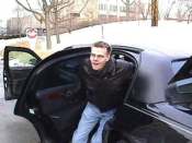 a car. He asks what kind of car, and the camera pulls back to reveal a