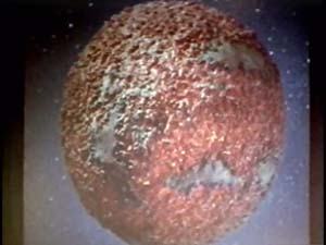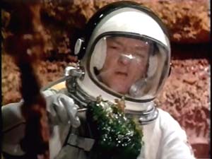 Anyhoo, the four team members enter the typically spacious shuttle and settle in. Outside in the docking bay, a siren goes off, accented with a red warning light that spins over red lettering reading "UTION WHEN". Really, somebody, how about a letterboxed copy of this film already? In any case, the crew scrambles from the floor as the crew prepares for lift-off. Oddly, though, no one seems to be moving from the catwalk, despite the fact that we see the entire chamber being depressurized and then opened to space about thirty seconds later. The shuttle takes off, and if the model work is hopelessly unconvincing, it’s still pretty fun. Hell, I’ll take it over CGI any day. Soon the rockets are engaged and the shuttle is heading to Flora. Suspenseful music plays, with a ‘the seconds are passing’ beat, to remind us that, you know, the Fate of the Earth and all. They accentuate the mood by having the folks back at Space Command and the Gamma Three pace about and grimace and suchlike. When Lisa looks over at a clock to check the time, she whips her head it like it just took a shot at her. The shuttle soon arrives at Flora, which indeed resembles a large meatball that was left in the fridge too long. As they prepare to land, Rankin gives out their assignments. There will be three teams, each of which will set a nuclear device at a designated location. "Take her in!" Rankin then barks, as the music helpfully goes, "bum bum!!" Outside, the various parties, hauling their bombs and armed with overly designed laser rifles, get ready to head out. Humorously, Rankin checks their helmet radio links by asking, "Everyone reading me loud and clear?" Yes, if you can’t hear him, raise your hand. No one does, so apparently all is well. He explains that everyone must be back to the ship in about fifty minutes. I’m not Nostradamus or anything, but I foresee a race against the clock in our immediate future. That established, they move out on little space carts, and let’s just say that this isn’t portrayed with the film’s most convincing attempts at miniature work. After a while, Rankin’s team stops. "This looks as good a place as any," he notes. Sure, why not? They deploy a large drill unit and it begins digging into the surface. Well, not when we’re actually looking at it, probably because the large drill bit is noticeably made of hollow plastic, but you know, let’s go with it. The two other teams are going the same, and one of their drill heads is actually seen moving around a heap of coffee crystals. Meanwhile, Halversen and Michael, being Scientists, stand around doing science stuff. You know, taking samples from one of the large standing pools of muddy water, or waving around a Geiger counter. Halversen, however, quickly makes a more exciting discovery: a pulsating mass of green protoplasm. Even discounting the film’s title, anyone who’s seen a couple movies in his time will probably be guessing that This Ain’t Good.