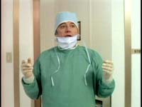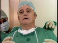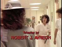 Afterthoughts: First, and most simply, it seems a bit like cheating to make guesses in order to mock a show’s predictability, and then erase them from the public record when I am proven wrong. However, there’s a more personally satisfying rationale, too. One reason The Hitchhiker program continues to merit attention here is that, even when I’m wrong in forecasting where the episode is going, it’s generally because, inveterate Hitchhiker mocker than I am, I’m still often guilty of giving the show too much credit. Take this episode. As I’ve noted previously, The Hitchhiker shows are generally shaggy dog stories of the hoariest order. In this case, Wikipedia sums it up perfectly: "In its original sense, a shaggy-dog story is an extremely long-winded tale featuring extensive narration of typically irrelevant incidents, usually resulting in a pointless or absurd punchline [sic]." If that doesn’t perfectly sum up The Hitchhiker in one sentence, well, I’d like to see it done better. This episode is an apt case in point. In my forecast of the show’s resolution, I predicted "Russell then helps another woman Hamilton has betrayed—Gloria, presumably, although Ensman is another candidate—by disguising the woman’s face with her professional makeup skills." As shown, my guess was inaccurate. Russell instead performed her arts upon her own visage, with neither Gloria nor Ensman being involved. The reason I was wrong, however, was not because the show proved smarter than I expected, and thus turned the joke back on me. Instead, and quite astoundingly (after all, few if any humans have spent as much time deriding this show as I have, much less bought dozens of episodes on DVD in order to continue doing so in the future), I was wrong because, as indicated above, I afforded the show too much respect. When you got down to it, here’s the gist of this particular episode: a plastic surgeon messes up a patient’s face; she gets mad, and messes up his face in return. That’s not a lot to fill up a half hour program (and since this was on cable, it is quite nearly a half hour, since there weren’t commercial breaks). That why the shaggy dog aspect is necessary. Now, there’s shaggy dog, and there’s Shaggy Dog. This proves the later, and, as Wikipedia suggests, the narrative is marked by "extensive narration of typically irrelevant incidents." The reason I assumed that Gloria or Ensman would figure into the climax was that, as veteran a critic of the show as I am, I still couldn’t help assuming that they wouldn’t have introduced these characters in the first place for absolutely no reason. And, to be fair, they didn’t. It’s just that while I naively assumed they would have some sort of, you know, actual plot utility. Instead, they were there for the apparently equally vital, if perhaps less artistically compelling, reason of providing some naked breasts for us to stare. (Please remember this program was first telecast in the early days of premium cable and home video, and well before the Internet was a household word, when nudity was by today’s standard almost unimaginatively difficult to come by.) Of course, the insertion of Gloria and Dr. Ensman into things also eats up time. As I noted, he messes up her face / she messes up his face doesn’t by itself fill up 27 minutes of screentime. However, I really think the ‘breasts’ explanation remains the primary motivation here. Think how clunky the episode’s sequence of events is. Hamilton doesn’t perform the operation until the show is more than 2/3rds over, and by the time Russell removes her bandages, we’re down to about the last five minutes. That compresses the amount of time Russell has to affect her revenge plot to a ludicrous extent, and moreover means there’s not real reason for Hamilton to be on his guard. A seemingly more satisfying plot structure would have involved Hamilton botching the operation in the first third of the show. During the middle third he could have removed her bandages, revealed the horrors beneath, and fled the country (or at least the city) after she violently attacked him and vowed revenge while being dragged off by security. Months later, in some obscure corner of the globe, she could have tracked him down and pulled her little disguise number. Sure, that’s just as dumb, boring and pointless, but it’s at least more streamlined. Meanwhile, I have to say, Hamilton getting his face slashed up doesn’t