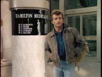 Names: Actors Robert Vaughn, Sonja Smits, Robin Greer, Arthur Corber, Michelle Scarabelli, and (Oh, yeah!) a "Special Appearance by SYBIL DANNING". Adapted from a story by Richard Rothstein, teleplay by Robert J. Avrech. Directed by David Wickes. Set up: We open on a closed door. Medical monitor ‘beeping’ is heard. The door opens and out emerges one Dr. Hamilton (Robert Vaughn), clad in surgical garb. A nurse pulls up his mask—now that the audience has had time to recognize the episode’s big guest star—and he prepares to operate. This is being observed by a small cluster of med students in an adjacent viewing room. One of these is a hot blonde, complete with feathered ‘80s hair. I assume we’ll be seeing more of her—in every sense—later on. Hamilton proves to be one of your standard Portentous Surgeons with a God Complex* so often seen in horror movies, dating back at least as far as Bela Lugosi Dr. Volmann in 1934’s The Raven. "Flesh is illusion," he announces to the onlookers. "Michelangelo worked his art in stone. I am a sculptor, too." If I follow my Socrates correctly, this means Michelangelo believed stone to be an illusion. Who knew? [*Please note, though, that this is entirely and completely different from the Orchestra Conductor with a God Complex seen two entire episodes ago.] As this scene progresses, we cut away occasionally to an obliquely seen woman. She is filmed in such a way that it is all but trumpeted that we never see her face. She is seen rising from her bed, taking a shower (with no nudity—a Hitchhiker first!!), painting her nails, and finally donning a face-obscuring broad brim hat before leaving her apartment. Meanwhile, back in the operating theater, Hamilton continues his spiel. Meanwhile, the camera tracks in on Attractive Blonde Onlooker (there’s a surprise), who is vamping it up, presumably for Hamilton’s benefit. Hamilton describes himself as a "modern day conjurer, improving on God’s work. I can do it better than Him." Gee, I wonder if Hamilton will finish up OK at the end of the show. Hamilton’s continuing blathering amounts to his being able to peer past any visage and the illusions it projects. "When I look, all masks are stripped away," he avers. "I see through each and every face." (Gee, will he fall victim to his own hubris? WILL HE?) After much more of this, we cut to the exterior of the building, which sports signage revealing to be the Hamilton Medical Center. There we find…The Hitchhiker! Hitchhiker Intro: "Dr. Christopher Hamilton is a plastic surgeon with ambition and a sharp scalpel. He sees a face, and he wants to change it. But unless he looks deeper, there’s [sic] some things he’s not going to see. Like a dangerous smile, even on the most perfect face." (Wow!) [A classic Hitchhiker intro! Why would Hamilton have to ‘look deeper’ to see ‘a dangerous smile’? Aren’t smiles, you know, generally detectable on a face’s surface? And why would a dangerous smile be so much more unexpected on a perfect face? Are pretty people less likely to be dangerous? Less likely to smile? Or just less likely to smile dangerously?] Back to our narrative. Mystery Woman enters the Hamilton Center to a blare of suspense music. As she strolls down the hall, with the camera at her back, passersby (including nurses!!) pointedly look upon her face with alarm. However, always working under the assumption that the viewer is a complete moron, they also toss in a young kid. He, needless to say, points and gleefully yells, "Mommy, look at that lady’s face!" Hamilton meets with the woman, and the big surprise is that she’s a former he that has had a presumably botched "full gender change." This is realized for us by putting a putty ersatz guy’s jaw and nose on an actress, along with an equally bogus Adam’s apple. This barely passes muster the first time around. The second time, as ‘he’ is being examined in a brightly lit room, it just looks ridiculous. "Doctor, there’s a pretty woman inside of me," ‘Miss’ Russell declares. "I want you to help her come out." Needless to say, Hamilton takes the case. (During the examination, Hamilton pauses to leer at a sexy nurse. He’s a skirt hound, get it?) By the way, they spend a fair amount of time establishing Russell to be a professional make-up person. Later, Hamilton is stopped by Dr. Gold, who introduces himself as a new medical resident in "[your] department." (Uhm, Hamilton only has a "department" in the "Hamilton Medical Center"?) Gold wants to register his concerns about Hamilton’s specialty, which he labels to be mere "vanity makeovers." Actually, Hamilton is currently working on a transgender patient—what could be more hipply ‘progressive’ than that? Gold, in contrast, explains that he’s more interested in "real problems," like burn cases. The guy has a point, but sneering at the work of the founder of the institution he’s currently employed in seems…counterintuitive. "If you want to make the world a better place, why don’t you join the Peace Corps?" Hamilton sneers. Master surgeon, perhaps. Master of the witty riposte…. perhaps not. Methinks his tongue is not as sharp as his scalpel. (OK, that line isn’t much better. However, I was wearing a ruffled shirt and velvet jacket, and flouncing a perfumed handkerchief, when I typed it.) Pretty Blond Resident (PBR) accosts Hamilton next. "Tell me," she inquires. "What do you see?" He invites her into his office to further discuss the topic. Cut to her naked on his office couch, on her tummy (allowing for the obligatory butt shot), and holding a fan. (?) Hamilton is just finishing getting dressed, and one can only be thankful that we were spared seeing Vaughn acting out his character’s amorous activities. Hell, I’m relieved we don’t have to see him with his shirt off. He answers the phone. Here the camera rather artlessly pans over to PBR, who rises in such a way as to give us a good long gander 
