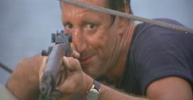 Unfortunately, for Hooper to inject the poison into the shark, he needs to get the needle into the soft tissue of the beast’s mouth. This he fails to do, and the shark makes quick work of the shark cage, although Hooper manages to evade the animal and swim to the sea floor to hide. After tearing up the cage, the shark turns its attentions to the Orca. Propelling itself out of the water, it lands on the aft deck, whereupon Quint meets his gruesome demise. In the end, it’s left to the ocean-phobic landlubber to figure out a way to destroy the beast. Facets of the Quint character show up in several zillion of the bajillion Jaws knock-off that continue to be made even today, nearly thirty years later. Sometimes it’s Quint’s status as a professional fisherman/hunter that is aped (Jaws 3-D, The Last Shark, Alligator, Alligator II: The Mutation). Usually, though, it was his obsessive nutbaggery that gets emulated (Blood Surf, Beneath Loch Ness, Crocodile, Grizzly, etc.). Another, more amusing trait often copied was Quint’s thick accent. His Irish brogue was, I’ll admit, often replaced with another sort entirely—Scottish in Beneath Loch Ness and The Last Shark, Cajun in Alligator II: The Mutation—thus providing the viewer with no end of cheesy amusement.