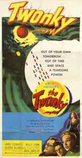 Like I said, putative monsters aside, Night of the Lepus is a fairly typical genre flick. But, oh, what a ‘monster.’ Yep, in this film humanity is plagued by giant carnivorous rabbits, which join the long list of meat-eating creatures that kill humans left and right without bothering to eat them. Frankly, I’m not sure you could come up with a less frightening animal to king-size, and certainly no other non-comedy has tried to do so. For despite all the macrovision close-ups and red paint applied to their little buck teeth, rabbits just ain’t that scary. Even when filmed in slo-mo to suggest their now immense size. (They are numerously referred to in the film as being ‘wolf-sized,’ but seemed closer to horses to me.) Drawing especial attention to this problem is the scenes where the human characters examine some giant rabbit holes. Since these apertures call to mind the similar openings of the giant anthills in Them!, you tend to compare the films. Given that Them! is probably still the best giant monster film ever, save King Kong, the comparison doesn’t work in our present subject’s favor. Oh, and giant ants are intrinsically more frightening than large rabbits. Just in case you were wondering. Highlights include, of course, the attempts to make rabbits look scary; some really bad matte and miniature work; the slow-mo used futilely used to suggest the rabbits’ size; perhaps the most obnoxious kid actor in history, who not only plays the brat responsible for the whole mess but who also gets to foreshadow the memorable "There’s no bee here!" scene from The Swarm; Leigh wielding a road flare at one point, inspiring a discussion of how road flares and fire extinguishers are the weapons of choice in sci-fi and horror movies; the hilariously gross scenes where the bunnies fly through the air spurting fake blood to suggest them being shot; and, of course, one of the great bad lines in Bad Movie history, when a sheriff gets the patrons of a drive-in theater to evacuate by grabbing a bullhorn and warning "There’s a herd of killer rabbits coming this way!" Freeman, meanwhile, will no doubt remember this movie as being when he most wished I had missed the show. I was waiting for this movie and was merciless with the puns. Beaters chasing hundreds of rabbits before them created a "receding hare line." Whitman lifting a rabbit from a crate was a "hare raising sequence." Special guns were used because they had a "hare trigger." Even through his disgust, however, this patriarch of the Cabal marshaled himself and, when I somehow missed the line, gleefully noted that a near-attack on the little girl was the result of a "bad hare day." Damn you, Freeman Williams! I’ll get you someday! Next was a stop-animated cartoon warning of what would happen if you ate an apple without washing it. Basically, zany stop-animated germ cells would battle your immune system, represented by little soldiers. Or something. I frankly couldn’t hear much of this, not that it probably mattered all that much. Anyway, it was hosted in bookend segments by William Shatner (!), whose appearances took place in a darkened room whilst standing behind a glowing white bowling ball. When I suggested that this object represented his ego it was pointed out that it was too small. Next a guy introduced a film that he provided for the fest. It was The Twonky (1953), and the guy declared that it was the worst film ever, in his opinion. He couldn’t even tell, he said, what it was supposed to be. Well, wonder no longer, sir, The Twonky is a comic allegory about the dangers of watching television. Hans "5,000 Fingers of Mr. T" Conried stars as a snooty professor whose wife buys him an unwanted TV set. (Its realistically sized ten-inch screen inspired numerous japes that it represented the ‘50s version of a widescreen television.)