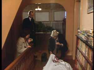 up. There follows the same ‘dead zombie’ montage that ends Raiders, only here it’s lit a bit better. That not the end of this version, however. Instead, we cut to Carstairs in his office. Figuring that MiB must be dead (?), he calls the police, or somebody. "This is Dr. Carstairs," he sighs. "I’ll be in in the morning. I’d like to claim a body." (Since his son died in an abandoned prison, and the witnesses have fled town, where would he be ‘claiming’ this body from?) I guess this was meant to set the stage for a sequel. (!!) That would seem the natural end for things. Instead, there