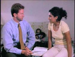 school hours. Back at the station, McClure is interrogating BHD. The latter wants to cut a deal with the D.A. Our Hero, having apparently seen numerous episodes of NYPD Blue (albeit while not learning much from them) promises to "see what I can do" if BHD cooperates with him. Here we start getting into trouble right away. "Trigger once told me that Tito likes to deal only with teenagers," BHD begins. The problem being that we have no idea who Trigger or Tito is, nor their relationship to each other, BHD, or really anyone at all. I realize this isn’t a big budget movie—in fact, it’s barely a movie at all—but a cost effective technique might have been for McClure to have a file of mug shots at hand, which could be used to let the audience identify who these characters are. Having just written that, BHD’s next sentence is "The vato’s name is Scrappy M." Great, that’s three characters I can’t identify. However, Scrappy M is Tito’s "right-hand man," for what that’s worth, and apparently a high school student. I’m not sure I’m impressed with a drug kingpin with a high school aged right-hand man, but there you go. And then… What the hell? I swear it looks like they dubbed in McClure saying "What else?", while accompanying a severe close-up of him in which he clearly isn’t opening his mouth. I was so confused by this that I went back and watched it a couple of more times, before finally deciding that perhaps there’s another, unseen cop in the room, and it was the latter who was supposedly speaking. After all, it’s hard to believe the film was that incompetent. After all, there’s no real need for the line. You can just have BHD continue speaking. And if they didn’t have a shot of McClure speaking the line, they could have just dubbed it over a shot of BHD. So, I mean… "There’s a vato [lots of vatos in this movie] name of Risky D," BHD continues, and by now I was ready to punch somebody. Risky D. is, moreover, "a member of the Cutthroat Mafia," an entire organization with which we’ve also been heretofore unacquainted with. Apparently, though, this is a rival organization of the South Side Crew. We also learn that Risky D wants Scrappy dead. Wow, if I had any idea who those guys were, that would be really exciting. Well, maybe not. It couldn’t hurt, though. It’s weird to listen to a block of awkward exposition that actually makes the viewer more confused, but this trend continues. "Scrappy tells his homeboy Tito about it," BHD continues, "and Tito puts a green light out on this kid." Cool, now they’re using slang no one’s ever heard of. Indeed, even McClure needs clarification, although as you’d expect from the context, a ‘green light’ is a contract. McClure reports to his superior, a woman who I never believed for a moment was a cop.* Aside from her manner, she’s rather young to be a police captain. McClure and she discuss the need to get Tito, who is…I can’t remember. Uh, wait… He’s the main dealer, I guess. Good thing I’d written this down. In any case, McClure’s info that Scrappy M (good grief) is a high school student ties in with his next assignment: That’s right, Our Babyfaced Hero is to go all David Cassidy, Man Undercover on their asses. [*Early in the scene the Captain’s lines don’t come close to matching her lip movements, making me suspect I may have been overgenerous regarding the dubbed-in line I mused about earlier.] Of course, ‘babyfaced’ is comparative. Actor Cahill is indeed fairly