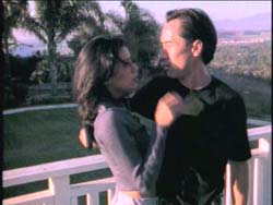 Before we can hear McClure’s reply, we cut to Burke talking with Trina in what I assume is meant to be her house. In a rather pronounced case of Scriptus Convenientous, it just so happens that Trina has had in her possession Yajaira’s backpack all this time, while failing to look inside it. Inside are copies (I guess) of the photos that got her killed. Meanwhile, Blacky is meeting with Vasquez, per the scene where he was demanding more money. Apparently Blacky never saw an episode of Barnaby Jones, since Vasquez says about half a dozen things that bad guys always say before killing somebody trying to blackmail them. Blackie follows instructions and gets into a car, where a member of the Cutthroat Mafia lives up to the group’s name. Vasquez dumps his body, sneering, "You wanted a big cut." Get it? A ‘big cut’? Amazingly, Cahill apparently actually coughed up enough money to buy one of those stage knives that leaves a trail of fake blood in its wake. It’s a gag familiar to any sixth grader, but on this film it represents the, er, very acme of special effects. (I almost wrote ‘cutting edge’ special effects, but that was a little too on the nose.) Exit Blacky. Meanwhile, Gabby is grabbed up by some bangers. Reefer Man then intercepts McClure and orders him to come along if he wants to see her alive again. (Luckily, the only students in the entire school right now seem to be those directly involved in the story.) Then we see Burke in his convertible and are treated to a ‘comedy’ scene where a black guy tries to sell him drugs, only to run away when Burke flashes his badge. Then Burke looks at something off-camera and drives off. I’m assuming he is supposedly seeing McClure being led out of the school, although that is at best conjecture. McClure is taken to the Principal’s house, who greets him with a gun. (Yes, if I were going to murder an undercover police detective, I’d arrange to do it in my home, too.) "I want to know what information you have on us," he demands. Well, he didn’t really have any before, at least on your involvement, but he sure does now. Having McClure in his power, the Principal naturally grants his request to see Gabby while also answering all of his (sort of) plot-clarifying questions. He is then just about to shoot when Burke pops up. McClure leaps over to Gabby and knocks her to the ground, out of the path of any errant bullets. As he does this, we can see the pad they laid on the ground to protect the actors, which is clearly, albeit inadvertently, in shot. Burke takes out two henchmen during some poorly blocked out gunplay (still sans blanks), while McClure frees Gabby of her bonds. By now the Principal has disappeared from sight, and we learn that Burke has been shot in the shoulder, so that McClure can run off solo and do what a man’s gotta do. He creeps around the house looking for his opponent, in a scene that suggests less a master gunfighter than a middle-aged suburban guy trying his hand at paint ball for the first time. The raw visceral suspense ends when he takes out the Principal, in a scene that doesn’t exactly scream ‘breathtaking thrills.’ Again, it’s more like watching two young kids play gunfight and ending with one of them grabbing his chest, going "Auugggh!", sticking his tongue out and falling over in a careful manner. Although to be fair, the guy playing the Principal doesn’t stick his tongue out. Meanwhile, Vasquez and his crew are in the garage playing ping-pong (!!) and sitting in those atrocious, two-buck white extruded plastic chairs. It’s a glamorous life in the drug trade. Apparently instead of investing in better furniture—like ten-dollar fold up chairs—the Principal must have spent a good deal of his ill-gotten loot on having his garage sound-proofed, since none of them have heard any of the numerous shots occurring elsewhere on the grounds. They are, moreover, barbequing some food on a propane grill, despite the fact that both the garage door and the connecting door to the house are closed (!!). Why would they do this? So that the smoke will force one of them to open the connecting door. (Yeah, opening the main door to the outside makes no sense when your goal is ventilation). Much to my lack of surprise, the open door ‘dramatically’ reveals a waiting McClure. He Stooge Fu’s the first guy, then draws his gun on the other five and orders them up against the wall. Like Burke, however, he’s too quick to turn his back, and the first dude recovers and jumps him. Vasquez runs off, but luckily for our hero, none of his henchmen, who hang around, are carrying guns. The result is the film’s ‘big’ fight scene, although it’s not any less ridiculous or more impressive, just longer. Aside from the typically cartoonish sound effects, highlights include McClure pushing one guy’s face into the barbeque (ick), and another guy falling on his knife. My favorite bit was McClure beating off one large guy with typically featherweight ping pong paddles. Maybe Jackie Chan could pull off making that look possible, but Cahill can’t. By the time McClure collects his gun and goes after Vasquez, the