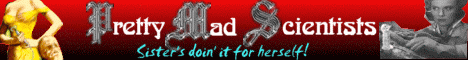 AFTERTHOUGHTS: Uh, this article is a lot shorter than I thought it would be. That’s the danger, I suppose, of choosing a film according to a theme, but not watching it first. The IMDB notes that this was ‘remade’ as Frankenstein Island, but I think that might be overstating things a bit. Certainly, Warren appears to have raided the earlier film for a number of elements. Still, the plots, such as they are, don’t really have enough in common to call the second film a remake. One’s an admittedly inept spy/espionage thriller, the other’s, well, Frankenstein Island. Perhaps it would be better to think of FI as the latter-day adventures of Dr. Myra. (By the way, if she’s ever named in the film, I didn’t notice. I got her character’s moniker off the IMDB.) Played by the same *cough* actress, one might easily theorize that Myra was actually the incognito Sheila Frankenstein. Making her escape some time after the events of this film, she then hooked back up with her husband, Dr. Von Helsing. There, on another secluded island base, she continued her zombie research and her taste in bizarrely overstated clothing. Compared to the inspired and markedly overstuffed lunacy of the later film, Teenage Zombies is a woefully pro forma effort. No cosmic manifestations here, no bikini-clad alien jungle girls, no Frankenstein Monsters hidden in an underwater grotto, no brains in transparent plastic bubbles, no pink spinning lunchboxes. Nor are we treated to the hammy thesping of genre icons such as John Carradine or Cameron Mitchell. Yes, there is the ape -- and how they came to leave him out of FI, well, you got me -- but he doesn’t really do much of anything. Shouldn’t he have murdered Myra, for that traditional ‘destroyed by what she wrought’ ending? Or at least engaged in a big, if silly, fight with the film’s other ‘monster,’ the zombie Ivan? Frankly, if he’d been left out of the picture no one would have really noticed. Last, this proved not that hot a choice for today’s topic. Sure, Myra is a Female Mad Scientist. Unfortunately, though, her gender doesn’t really have much to do with anything. Had Myra been played by a man, the film could have proceeded without much change. It would have been more fun to find a movie involving a FMS who was in some way actually motivated by her sex. Well, live and learn. _______________________________________________________________________