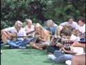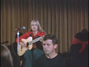 However, the School isn’t just on the cutting edge of Western Technology. They also hold outdoor classes in yoga. Sadly, though, the students are not naked during these, nor do they turn and say ‘Zoom’ to one another, so I don’t really get the point. Even so, the kids learn "meditation and body exercises, all kinds of dance, even belly dancing." Belly dancing?! No wonder the outside world feels threatened. And, as Sonny Bono once noted, the beat goes on. "Music, band, drill team, arts, crafts, advanced physics, mathematics, psychology, classics, even into athletics." Here we get several shots of the school’s soccer field and tennis courts. It was while gazing upon the latter, by the way, that I completely lost hope that Laughlin would elect to edit out even a single piece of footage he shot. Anyone wondering why the film’s three hours, well, there you go. It’s because they couldn’t bring themselves to lose anything this golden. Meanwhile, you might be saying, ‘Wait…athletics? Hmm, that sounds suspiciously bourgeois for the Freedom School.’ Have no fears on that score, however. "Even into athletics," Jean informs us, before clarifying, "which they called ‘yoga athletics.’ From Yoga Tennis to Yoga Football and every sport in between." Yoga athletics, to the layman’s eye, appears quite similar to regular athletics. The difference being, presumably, that they are a lot more groovy and, like, you know, Relevant and stuff. But wait! Why take my word for it? This is, after all, The Trial of Billy Jack, and thus we have plenty of time for Jean to expand upon this or any other subject in which we, the viewer, are certain to be so fascinated about. "The idea," she continues, "always being that the thrill of participating and the self-discipline one develops while training, preparing and learning, made one a winner for the rest of his life, no matter how well he played, or how the temporary contest came out. And so winning and losing or worrying about someone grading your effort was just not all that important anymore. Growing and having the fun of doing, that was the important thing." Wow! Actually, this explains a lot. The Laughlins, quite apparently, made The Trial of Billy Jack as an example of Yoga Filmmaking. Yes, now it all makes sense. I mean, does it really make any difference who ‘directed’ well, or who wrote a ‘good’ script, or if the people playing various the roles could ‘act’? Hell, no! Not was long as everyone was growing and having the fun of doing! But, wait, there’s more! For… Hey! Get back here, you bastard! If I have to sit through this dreck, you do, too. Anyway, the school used some of their grant money (cripes, how many millions of taxpayer dollars were being squandered here at Hippie U?) to build—aside from the soccer field, football stadium, tennis courts and Olympic-sized outdoor pool—a radio station and recording studio. Here we cut to a pretty blond teenager, who warbles a rather awful ‘70s-style pop ballad. Her verbal proficiency at this task suggests one who’s spent a lot of time listening to Maureen McGovern albums, yet failed to learn much from them. In any case, these records, we learned, are taken into town by the kids and sold door to door. The revenues from which, I guess, go to help the school, uhm, build more Yoga Tennis Courts or something. But wait! Why take my word for it? This is, after all, The Trial of Billy Jack, and thus we have plenty of time for Jean to…wait, I think we’ve gone over this already. Anyway. "With some of the royalties," Jean explains, "they started an institute for child abuse and children’s rights. In working with these abused and orphaned children, they were stunned to find out what was secretly going on in children’s orphanages and juvenile courts, state institutions for disturbed and retarded children, children’s hospitals, and education in general." Actually, I had a bit a trouble swallowing the idea that the students were amazed to learn all this. In the Billy Jack films, pretty much every parent we see (at least in society at large, i.e., White America—and we see a lot of them) subjects his or her children to horrific emotional and/or physical abuse. Fearing that Jean won’t continue on, given her natural reticence and all, the reporter prompts her with another rather leading question. "Is that when they started a native-type [??] newspaper and magazine and then began those scorching exposés on government corruption and consumer rip-offs?" (Scorching exposés? But those are the most dangerous kind!!) Jean confirms that this is so. "And it was in doing those exposés that our troubles really began!" For these, you see, so threatened the Powers That Be, the horrible, murderous, racist government that was providing all the funds for the Freedom School…er, anyway. Cut to a bunch of kids discussing what Injustice they should scorchingly expose next. "We’ve been digging," one young lady notes. (Digging?! No wonder the Government is petrified!) "Remember, in December of ’73 the Interior Department called in, what was it, 250 oil executives to work on fuel allocation, right? So we started digging behind that, and we found out that the Oil Barons and the White House manipulated the energy crisis, including the Israeli War! Just, just unbelievable profits! [Oh, my gosh! If there were profits involved, then you know something evil was going on!] It makes the Alaskan Pipeline look like kid stuff!" Actually, I think this scheme went even higher than the kids think. For instance, I believe that the Oil Barons were in fact just following the orders of the Petroleum Dukes, and so on, with the trail ultimately leading all the way up to the throne of the Fossil Fuel King. And, man, I didn’t even know the Six Day War was part of the energy crisis! I thought it was just a bunch of Arabs trying to utterly destroy a country full of Jews. But now that I think about it, I realize t