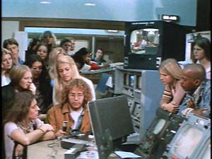 The report we see is on a woman who missed three payments on her furniture, whereupon the store repossessed it. To my surprise, the focus of the story wasn’t, "Local Store and Woman Freely Enter Into Contract, Woman Violates Terms of Same, Loses Furniture" but rather the opposite. The ‘rip-off’ occurring here, as I don’t see how it can be described as a ‘secret deal,’ even by these folks, is that the store didn’t just say, "Look, if you can pay us, that would be nice. Don’t worry about it, though." On the other hand, the woman in question is black and old, and was in the hospital at some point, so you can see how mean that was. As you’d expect from hippies, the student reporters don’t exactly have the entire ‘capitalism’ thing down. (Although I notice no one besides the store had been providing the lady with furniture.) "After you missed your payments," one budding Bernstein asks, "you found that they had destroyed your furniture [destroyed her furniture?] and repossessed it [what, after they destroyed it], and now they refuse to refund the money to you on which you had paid on it for two years before they had repossessed it?" First, glad the Freedom School’s ‘Yoga English Language’ classes are doing so well. Second, yes, when you go into default on a contract, they repossess the merchandise and keep the money you’ve already paid. Wow, way to blow the lid off this previously unknown aspect of contract law. Inside the store, the small sales staff is watching the report (it’s live?), thus probably tripling the amount of people seeing it. The manager moans that he didn’t want to repossess the furniture, but, you know, the not-paying-for-it thing. However, lest this makes him look too sympathetic, he also moans that he was "just following orders"—WHICH IS EXACTLY WHAT THE NAZIS SAID!!!!!—and also tosses off an ugly racial slur. After all, we wouldn’t want the lady’s Economic Oppressors to come off too well. Finally, though, the "home office" calls and demands he replace the woman’s furniture with new stuff, free of charge. "Those crazy, lousy kids," he complains. Yes, if it hadn’t been for them and their dog (a zany pop culture reference; look at me, I’m Quentin Tarantino… hey, that’s another zany pop culture reference!) you would have gotten away with it. ‘It’ being following through on the terms of the contract you and the woman legally entered into. Thanks for preventing that outrage, Mystery Gang! That’s how powerful the Freedom School TV reports have become, I guess. (And where is the "home office," and how can they possibly be seeing the report? I mean, college radio and TV signals generally travel about half a block, and that’s on a good day. This was well before cable, remember.) Meanwhile, I’m assuming the store started a new advertising campaign: "Buy your living room set at Phil’s Furniture, and if you miss three payments, we’ll replace your purchase with newer furniture for free!" In any case, it’s now obvious that the kid’s TV Station is on the verge of bringing Corporate Amerikkka to its knees. "It was shortly after that that they started bugging our phones," Jean elucidates, "and the FBI started making mysterious and routine calls to the school." Wow, mysterious and routine? Is nothing beyond their malign powers?! Anyway, what did they expect would happen once they started messing with the local furniture store? We then see one of these Gestapo-like FBI