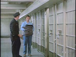 that it could possibly rebuild the world!" We cut to the prison, where Billy is receiving his personal possessions prior to being freed. The Warden (no, not the one at Prisonflicks) shows up with a typically Oily Flunky and tries to hustle Billy into attending a joint press conference. Of course, Billy reacts to this blustery entreaty with icy disdain and walks out. Cue a burst of inspirational music. Here one nearby trustee turns to another and opines that Billy will soon be back behind bars. "No way," his comrade confides. "They’ve already got him marked." The first trustee is shocked. "You mean they’ll kill him?" he asks. Man, prison inmates just aren’t are hardboiled as they used to be. On the other hand, the info network seems to be working fine, given how some of the cons know that ‘They’ have Billy marked for the big sleep.
