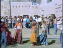 Cut to Jean, standing with her back to the camera. She’s atop a butte, with gorgeous vistas laid out before her. She soon sees a car approaching. Eventually it arrives and Billy climbs out. She turns, and we see that she’s brought Billy’s trademark wide brim hat. (!) She and Billy had only declared their love for one another at the end of the previous film, just before he was taken into custody, and so this is their first real time together. There follows a poorly chosen directorial flourish in which each is treated to a camera zoom from a distance, which makes the scene play like something out of a soap opera parody. The goofy music doesn’t help either. Even so, the climax of the scene has them simply holding each other for a long period, perhaps hours. The restraint of this, rather than the more formulaic passionate lip lock, is quite refreshing. Cut to the next morning. The consummation of their relationship is only implied, and it struck me that the Laughlins were surprisingly prudish on sexual matters, especially given the times. Jean looks over at Billy. He’s back in his trademark hat and denims. Standing before a waterfall, he blows smoke from a pipe in various directions, in such a manner as to imply that he’s conducting a ceremony of some sort. There follows a bit to which the uninitiated can only responds with startled guffaws and vigorous eye-rolling. Jeans hears a sharp call and looks up in the sky, where an eagle has suddenly appeared above them. This majestic creature circles around a while. ‘Mystical’ music is heard, and eventually the noble bird comes to land upon Billy’s outstretched arm. (!!) I mean, really, what can you say to something like that? The symbolic connotations are so overripe that it’s nearly impossible to take the image seriously, although there’s little doubt that Laughlin intended us to. This sequence, therefore, is pretty representative of Laughlin as a filmmaker. Everything is just entirely excessive. First, there’s the pretentious use of expensive helicopter shots to portray what is admittedly some beautiful scenery. (To be fair, I believe that Laughlin funded this film out of his own pocket, so I guess he was entitled to helicopter shots if he wanted them.) The music, meanwhile, is just a little too lush. Finally, there’s the self-parodying image of an eagle majestically alighting upon the noble Billy’s arm. Laughlin is one of those people for whom too much is never enough. As I noted earlier, Laughlin also exhibited an increasing messianic streak as the series progressed. The gag with the eagle certainly points in that direction. This impression is duly reinforced, meanwhile, when Billy arrives at the Freedom School and finds himself lovingly engulfed by hordes of cheering people, seemingly hundreds and hundreds of them. Frankly, what this most called to mind were the larger scaled but strikingly similar crowd scenes in Richard Attenborough’s hagiographical Gandhi. Inside the school, and with waaay too