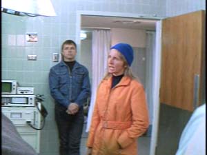 In any case, we haven’t really wandered completely off track in the roughly ten minutes since the child abuse conference. Therefore Carol comes out to report that Running Deer—wait, the Running Deer?! Fabled-in-song Running Deer??—and his sons are apparently lost up on a mountain top, where they illegally went to hunt deer. Moreover, the State Police and the Ranger station have refused to help find them. "They don’t give a damn when Indians are involved," one fellow acidly notes. Whatever. This leads to a long sequence, which again must have eaten a pretty good hole in Laughlin’s wallet. This features helicopter search teams—although given that the State and Federal agencies have declined to help, I’m not exactly sure where these came from—joining skiers from the Freedom School and heading up into the raging blizzard to help find the missing party. The two sons are quickly located, although one of them is dead. Meanwhile, none other than Jean and Billy come across the comatose Running Deer, and radio in for a chopper.