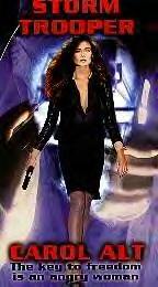 Plot: Eeee-vil Gov’ment SpOOks ineptly attempt to kill an escaped experimental subject. Every hobby has its inherent downsides, the sort of things generally referred to as occupational hazards. For hardcore us B-movie addicts—by which I mean, those who buy random, wholesale lots of cheesy sounding videos on eBay, or load up a weekend’s worth of viewing fodder from the sci-fi and action shelves of their local rental store each Friday—one of those hazards is that you’ll all too often pop a cassette or DVD into your player, only to be confronted by the words "Directed by Jim Wynorski.*" [*Actually, while the result is generally the same, there are permutations to this. For instance, looking at the reviews found at various of my colleagues’ sites, it seems that many of them are more prone to be afflicted by the oeuvre of Albert Pyun. Perhaps I just spend a greater amount of time perusing generic ‘action’ films, but more likely it’s because I’m not as enamored as they of movies about cyborgs. The all-too plentiful works of Fred Olen Ray deserve a mention here as well.] It’s says something about the human condition that I continued to watch the movie even after these dire words appeared on the screen. Well, actually, maybe it just says something about my particular condition, but I’d prefer not to dwell upon that. In any case, Storm Trooper proved pretty representative of Mr. Wynorski’s output. Utterly nonsensical and shot presumably over the course of several days and with an apparent budget reaching well into the tens of thousands of dollars, the film is most noteworthy for how exceedingly tedious it is, given the vast amounts of violence, gunplay and explosions it crams into its barely 80-minute length. As is his habit, Mr. Wynorski apparently spent the bulk of his meager resources assembling the sort of ‘name’ cast that mysteriously must increase video unit sales. The star of this feature is model-turned-actress…hmm. On second thought, that’s a bit much, based on her performance here, anyway. Let’s instead say, ‘model-turned-object-filmed-by-Jim-Wynorski,’ Carol Alt. To be fair, Ms. Alt no doubt gives her all here, and the script, for good or ill, provides her plenty of opportunities to do so. However, I don’t believe she’ll be mentioned in the same breath as Jessica Lange, or even Rebecca Romijn-Stamos, anytime soon. On the other hand, I await with a pathetically fierce anticipation her upcoming project, Snakehead Terror. The remainder of the cast is typically made up of serviceable, eminently familiar B-movie vets, as well as wince-inducing turns by folks who previously had starred in real, actual movies. The former set includes the venerable Ross Hagen, Rick "Deathstalker" Hill, Jay "Hollywood Chainsaw Hookers" Richardson, Melissa "Raptor" Brasselle and Melissa "Raptor" Brasselle’s breast implants. (Don’t get too excited, the latter remain under wraps throughout the proceedings.) Since there’s now a union rule that every DTV movie must have a rapper in it, Kool Moe Dee makes a rather pointless appearance. The saddest face to appear here, however, it that of Zach Galligan. Less than fifteen years earlier, Mr. Galligan had starred in Joe Dante’s Gremlins, one of the films that defined the ‘80s. By 1991 he was appearing in woeful crap like Zandalee, and in 1994 his fate was sealed when he played in the likes of Cyborg 3: The Recycler. How the likeable young man who starred in Gremlins ended up toplining the second sequel to a Jean-Claude Van Damme/Albert Pyun movie is too depressing to contemplate. In any case, here his part can’t even be called a second banana role. It’s more of a third, forth or fifth banana. That’s not the end of it, either. Also appearing here is Corey Feldman, which perhaps explains why he consented to appear in the embarrassing WB reality show, The Surreal Life*. Mr. Feldman appears as one of a number of mostly faceless mercenaries, and his former fame only garners him a couple of personal close-ups and an eye-patch presumably meant to help us distinguish him from his fellows. I suppose the most damning statement I can make about his film is that it makes you feel sorry for Corey Feldman. [*Perhaps the most revealing moment of The Surreal Life involved the show sending the has-been cast—except for still-working rocker Vince Neil, Feldman and MC Hammer were easily the program’s biggest names—to buy themselves groceries. Entering the store, the majority of them looked around the place in obvious ignorance and wonder, and I realized with a shock that even Corey Feldman still has people who buy his groceries for him!] The film hits the ground running, or at least limping. A group of *ahem* elite solders—I guess, although they don’t even have matching clothes—arrive and deploy themselves at a building identified as the Tannis Corporation. (Per usual, this edifice is obviously, in real life, a water filtration facility.) Leading the team is General (!) Beckett. "Two got away," he snarls. "Find them." Meanwhile, two of his men fall prey to a naked man and woman, who kill them and steal their clothes and weapons. The nudity is implied rather than explicit, by the way. Given the sort of film this is, makes you wonder why they’d bother. The two are dispatched via the "cup chin from behind and twist head one inch to the side" technique that’s so popular in movies today. In fact, this method will be employed at least half a dozen times throughout the proceedings. Who knew it was so easy to snap a person’s neck? Meanwhile, Beckett demands a report from his (clearly civilian) subordinate, Kreigal (Galligan). Kriegal reports that their targets remain at large, lamely noting "They offered maximum resistance." Whatever the heck that means. I mean, seriously, who writes dialog like that? Anyway, other soldiers (I guess they’re soldiers, but if their civilian dress is meant to be a disguise, what’s with t