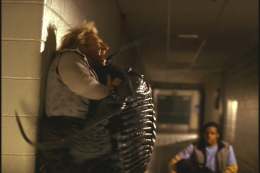 Admittedly, the title beastie isn’t going to put Them! or The Beast from 20,000 Fathoms to shame or anything, although it’s capable enough. At least the creature physically exists and can interact with the cast. And Buechler is savvy enough to keep the monster offscreen most of the time. I’m sure many of the kids out there will be unsatisfied by it, as the youngsters generally seem to prefer even outright bad CGI to moderately effective practical effects. Not me, though. I got a kick out of it, and even more so from the bit of miniature work seen during the film’s climax. It never fooled me for a second. Yet at least the effect is fun. Which is more than you can say about instance, the CGI creature seen during the climax of They Crawl or the animated beasties of Killer Rats. It should be noted that the other reviews I’ve read on this film tend to be much more scathing. For instance, there’s Scott Foy’s trenchant and much more exasperated critique. (Warning: It’s also chock full of spoilers.) So be advised. Unless you’re going to be renting something of this sort anyway, and merely want to get a reasonably watchable example of the breed as opposed to, you know, an actually good movie, you might find yourself agreeing more with them than with me. Still, I was reasonably satisfied and entertained, which is a sadly infrequent occurrence. The film’s DVD comes with a solid, if unspectacular, commentary by Buechler. Thus we learn that the film, despite the plethora of German names in the acting and production company credits, was shot in El Segundo at a water treatment center. Perhaps the evident German funding for the picture explains the film’s benevolent assurance in the UN. Amusing insights include the fact that Buechler was the director of the infamous softcore Sword & Sorcery epic Sorceress. Starring twin Playboy Playmates, the picture’s most infamous scene involved one sister being deflowered while her bewildered sibling, miles away, experiences the event via their Corsican-brothers like telepathic link. Amusingly, one of the actors here was the same guy who played the movie’s goat-man Pando. Oddly, it was the production company that dictated the film’s restrained amounts of blood and guts. This was fine with me, although I imagine the gore hounds will be rather disappointed. Buechler, too, reveals that he chaffed at the restrictions, having apparently wanted to amp the gruesomeness up quite a bit. Which is sort of weird, as he keeps talking about how he intended the film to be a ‘50s style big monster movie. In that case, the lack of overwrought gore would seem more in keeping with the film’s intent. Summary: If you’re going to rent a Giant Killer Whatsit