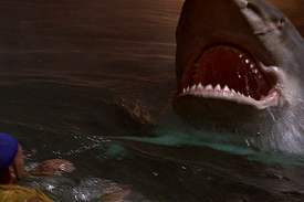 As I noted, there are several things, often small but telling, that I liked about the film. First, very little of it was shot on sets. The majority of the movie takes place outside, and was apparently actually shot on exterior locations. This, coupled with the (intentionally?) somewhat grainy appearance of the film stock, lends the picture a nice ‘70s texture, bringing to mind low-budget but enjoyable flicks like Piranha. Much of the proceedings supposedly take place in the backwaters of Louisiana, in Cajun country. While the project was in fact shot in South Africa, according to the IMDB, anyway, there is quite a lot of gorgeous scenery on display. Let’s see. The acting is competent, which again means in this context, ‘better than you’d expect.’ Lou Diamond Phillips is generally pretty good here, although there are moments when he seems to be trying a little too hard. We’ve all seen enough estranged spouses in movies to fill in the blanks from the couple’s first scene together. Despite this, the script tosses in a generally useless scene where Sanders tells Emery his and Kelli’s backstory. Since this doesn’t really advance the characterization all that much, I’m assuming it was intended to provide an ‘acting’ moment for Phillips, full of bathos and such. Such moments aside, though, Phillips is pretty solid. I wasn’t expecting much from him, as his history in genre pictures (Bats, The First Power, Supernova) is pretty woeful. However, I forgot that he can act, and he’s entirely serviceable here. Kelli, meanwhile, is play by veteran actress Kristy "Buffy the Vampire Slayer" Swanson. One thing I enjoyed about the movie is that the cast isn’t, as in so many of these, made up of purported teenagers or brainless, hedonistic college students. Swanson provides a perfectly serviceable performance. Most impressively, she manages to spit out a lot of technical data and jargon—she’s playing an environmental scientist—in such a manner that she sounds like she’s actually used it before and even knows what it means. On a side note, I also liked the fact that there’s very little exposition about technical matters in this film. Sanders, Kelli and several of the others toss around acronyms and jargon, and the filmmakers have enough sense not to bog things down by stopping to explain what they’re talking about. After all, it’s not really important that we know what a ‘blowback’ (as one example) is, but that we believe that they know what it is, and that it’s not a good thing. This also tends to make the scenes more naturalistic, as the characters don’t *gasp* stop to explain to each other things everyone should know in the first place. The rest of the cast is generally pretty good, as well. Coolio—all such movies by law much now have a rapper in them—plays the same generic black hood he’s already played two dozen times before, and is entirely fine. Jaimz Woolvert, who some might remember as the Schofield Kid in Clint Eastwood’s Unforgiven, proves he still has his chops in a fairly minor role. Even the two actors saddled with exaggerated accents (Cajun and Australian, respectively) they don’t always manage to pull off are generally fine. The rest of the supporting cast acts professionally enough that none of them call attention to themselves, which is as it should be. The musical score also gets some points, with a bunch of Cajun music helping suggest the location. Getting away from rap or techno music is always a relief these days. Some scenes set in a backwater Cajun village, meanwhile, come off as a somewhat pale replay of Walter Hill’s Southern Comfort, although they do provide the film with some color. Then, of course, there’s the shark. When we first see the beastie, it’s realized with CG effects, which is also utilized throughout the film. Luckily, however, there’s also a practical prop shark used to physically interact with the cast. Admittedly, in a few shots it looks kind of shoddy, but man, I just love stuff like that. As you might expect, the CG work is all over the map. Some of the shots are pretty decent, several are pretty obviously what they are, and a couple prove all too cartoonish looking. On the whole, however, I was satisfied, although I personally would have used the practical shark at greater length. The film also has individual little moments I liked. By which I mean, small touches that indicate there are people thinking some of this stuff through. Several of these involve Phillips. I like when he and Kelli inevitably start raking over the coals of their relationship after she first shows up. Eventually he just orders her off his boat, and it’s obvious he takes a small amount of spiteful pleasure in doing so. He’s clearly still carrying a torch for her. However, one of the few benefits of her having left him is that he doesn’t owe her anything. When she shows up, needing his help, he’s free to tell her to leave when she doesn’t want to take no for an answer. It’s kind of petty, but it has a genuine feeling to hit. I also liked when Sanders suspects someone working below the oil rig is being attacked by the shark, and he grabs a metal weight before he dives in the water, so as to pull him down more quickly. He just does it instinctively, and it provides a sense that this guy’s actually worked around the water before. As well, check out his face when he first clambers aboard the oil rig. This is a life he wanted to leave behind, but it’s also a place where he was doing something he was very good at, and you can see the conflict between his uneasiness and his pleasure at returning to the job. Of course, the film does have its problems. First, it’s too overstuffed with plot elements. There’s Sanders and his money problems, the ex-wife, the problems with the oil platform, the murderous crooks and their search for the loot, etc. Oh, yeah, and the killer shark. I’ve read some of the reviews found el