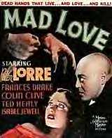 Plot: A concert pianist loses his hands in a train wreck. He becomes the recipient of a radical transplant operation, but learns that his new hands once belonged to a murderer. Now his new appendages come to have a murderous mind of their own. Or do they? Wow. This was one of comparatively few horror flicks from the ‘30s I hadn’t seen, and boy, it’s topnotch stuff. Keep an eye out, in fact. The film was produced by MGM, the company most aggressive in terms of releasing their backlog of genre flicks to DVD. Hopefully Mad Love will be released sometime soon on disc. Given the beauty of the movie’s cinematography, a digital release would be of great benefit. We open in Paris. Yvonne is a beautiful actress who stars in a Grand Guignol theater production. Or as much as one as they could show in a movie from this period. Her role is as a woman who refuses to name her lover and is thus dispatched via torture. Watching from the box he’s rented every night of the run is the brilliant if rather eccentric Dr. Gogol. Gogol is played by Peter Lorre, appearing here in his first American film. (Like many other of the luckier Germans, including his M director Fritz Lang, Lorre fled from the then recently installed Nazi government.) The actor sports a bald head here, which along with his bulging eyes and round head creates a genuinely strange and disturbing visage. After the show, the last of the season, Gogol goes backstage to praise Yvonne. Shocked to hear that she will not be returning to the stage, and more so that she is wed, Gogol declares his love for her. As mentioned, however, she’s married to Stephen Orlac (Colin Clive!), a famous English concert pianist. Even aside from that, however, she finds Gogol faintly repulsive. The stage manager breaks up their increasingly awkward conversation by arriving to escort his star to the wrap party. Oblivious to what’s going on, he also invites Gogol. In a truly uncomfortable scene, the Dr. is pushed into the line of those offering the new bride a kiss. Unable to control himself, he gropes at her desperately, an embrace from which she struggles free with equal fervor. Humiliated, he takes his leave. Leaving the theater, he sees some workmen disposing of the wax statue of Yvonne used to advertise the show. Obsessed with the legend of Galatea, a statue that came to life after its sculptor Pygmalion fell in love with it, Gogol purchases it. Our story might have ended here, but instead Stephen is involved in a train wreck. He survives, but his hands must be amputated. Knowing that her husband couldn’t live without them, Yvonne desperately seeks the aid of Dr. Gogol, who is renowned as a brilliant surgeon. After an examination he concurs that the hands must come off, but is tortured by Yvonne’s disappointment in him. Having witnessed the execution of a murderer that afternoon, an American circus knife thrower who killed his father, Gogol gets an insane idea. Perhaps the hands of the recently dead killer could be attached in place of Stephen’s ruined ones… The operation is a success, but Gogol keeps the truth from the couple. Meanwhile, although the hands function, they don’t play the piano very well. Stephen does notice, however, a new predilection and skill for throwing knives. When Stephen’s father ends up murdered with a knife, he begins to doubt his sanity. Is he being controlled by his new hands, or is Dr. Gogol pursuing a scheme to drive him insane? This is a pretty neat little picture. I especially like the short running time, which lasts under seventy minutes. Basically they utilize a lot of scenes, but each segment is keep to whatever length is necessary to get its point across. I’ve seldom seen a movie that contained so little fat on its bones. Also of note is an unusually complex level of characterization. Gogol seems practically schizophrenic. He obviously is deeply concerned with his patients’ welfare, but also is drawn to displays of physical pain and death. Meanwhile, his love for the beauteous Yvonne is pathetic but understandable. As a brilliant surgeon who finds himself driven to madness after he unexpectedly falls in love with a beautiful entertainer, he rather recalls the Bela Lugosi character from The Raven. Gogol is much more sympathetic, however. He tries to do the right thing, but when Yvonne inserts herself back into his life he goes over the edge. Yvonne, meanwhile, is callously willing to exploit Gogol’s feelings for her, despite the fact that she knows she will never reciprocate them. Admittedly, she does this to save her husband, but it does keep her from being one of the morally flawless heroines typical from films of that period. As well, when the termination of Orlac’s career threatens them with poverty, she isn’t given one of those "I don’t care as long as we have each other" speeches. Instead, she seems realistically concerned about the situation. Rollo, the executed knife-thrower, is also a different sort of character than you’d expect. A roly-poly little man, he accepts his sentence of death by guillotine as just and faces his fate with marked good humor. In fact, this lends weight to the idea that the whole ‘killer hands’ thing in Stephen’s head. Rollo might have slain his own father, but he hardly seems someone who’s in a perpetual murderous rage. Therefore the idea that his hands would constantly be seeking to commit mayhem seems unlikely. Then there’s Reagan, a wisecracking American newspaper reporter who provides a better than average example of what was at the time a copious cinematic breed. Ironically, Orlac himself is the film’s least interesting main character. They try to beef up the part by casting horror icon Clive in the role, but it’s no go. The film belongs to lead actress Frances Drake and Lorre. Clive is as much a co-equal star as Paul Henreid was with Humphrey Bogart and Ingrid Bergman in Casablanca. Mad Love was made by an interesting collection of people,