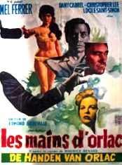 Plot: French/British co-production that redoes Mad Love. Chris Lee shows up to lend a...er, in support. Egads, what a suck-fest. Well, I’ve seen two new movies (and one, Beast with Five Fingers, that I hadn’t seen since childhood) for this article. One was brilliant, one wasn’t. This is the story of the latter. Where to start? The story here is completely different from Mad Love, first of all. So I’m not sure which film is truer to the book, not that it matters much. Unlike Mad Love, here the film revolves around its title character, pianist Stephen Orlac. Orlac is played in sweaty style by Mel Ferrer, an actor who most often made films in Europe. He also made the familiar journey from real movies to outright schlock as his career progressed. In latter years he appears in such flicks as The Great Alligator, Eaten Alive and Screamers (the fake guys-turned-inside-out movie). Here he attempts to ham it up, but he lacks a real talent for it. Making this more comical is that in transferring the film from widescreen to a full frame format for the video, the numerous close-ups are transformed into inanely close ones, with faces filling the screen. The tape I have also contains severe grain because of them blowing up the picture to a larger size. I’ve not seen the Rhino video release version commercially available, so perhaps these problems aren’t as noticeable there. Stephen Orlac flies to France to ask the beautiful Louise to marry him. The airport is fogbound, however, and the small aircraft crashes. Waking up with his hands encased in gigantic plaster casts, giving them an alien appearance, he dazedly conflates two nearby newspaper headlines. One is about the ruin of his hands, the other the execution of the murderous strangler Louis Vasseur. In what might have been an interesting bit, the French text swims around and is translated to English. This is done via animation, and I think that, perhaps, the idea is that the text is scrambled in his confused mind to indicate that he received Vasseur’s hands after losing his own. However, this potentially clever moment is ruined by the video's full frame formating. Because of this, the altering text runs off the screen and thus is made impossible to make out. Since this is perhaps the only clever moment in the film, the whole thing is doubly unfortunate. I went back later and, using the slo-mo button, I think I’ve more or less deciphered the above referenced changing headlines. We start with the two stories next to each other, LOUIS VASSEUR PAIE SES CRIMES and STEPHEN ORLAC PERO SES MAINS. Then the camera zooms in, which in full frame cuts off letters. We now see the headlines in English (again, I’m filling in for the offscreen text), as LOUIS VASSEUR LOSES HIS HEAD (obviously not an accurate translation of the prior French headline) and STEPHEN ORLAC LOSES HIS HANDS. The headlines then change to cartoon text and, in Orlac’s mind, continue to alter. First they become LOUIS VASSEUR WILL STRANGLE NO MORE and STEPHEN ORLAC WILL HE PLAY AGAIN? Then LOUIS VASSEUR WILL HE PLAY NO MORE and STEPHEN ORLAC WILL STRANGLE AGAIN. Then THE STRANGLER GETS THE KNIFE and THE STRANGLER STEPHEN ORLAC GETS NEW HANDS. Then we close in on the second headline, which now changes (I think, the closer we get the less text I can read) to STEPHEN ORLAC GETS THE HANDS OF LOUIS VASSEUR THE STRANGLER. Again, this all might have been neater if I didn’t have to spend ten minutes futzing with my slo-mo button and rewind to figure all of this out. Living in Paris after recovering, Orlac remains convinced that his hands aren’t his own. He has trouble playing the piano, an old ring doesn’t fit and an old pair of gloves rips at the seams when he attempts to don them. Moreover, during a stopover at a convenient carnival (?) he is talking into trying a grip-testing machine. To everyone’s amazement, including his own, he achieves an impossibly high score. This further troubles him, as everyone knows that strangler’s have greater grip strength than, say, concert pianists. I mean, why would pianists have strong fingers? This all, by the way, occurs in the first fifteen minutes of the film. Leaving a lot of tedious stuff to follow, a bizarre cinematic adoption of the military’s "hurry up and wait" philosophy. On an engagement trip in France, he becomes freaked about his hands again and runs off. Checking into a cheap hotel, he draws the attention of sleazy conman/stage magician Nero (Christopher Lee). Nero eventually learns of Orlac’s fears and schemes to drive him to the brink of madness, then blackmail him. A plan, need I add, that never comes to make any sense whatsoever. This doesn’t exactly help our interest in the film either. Nero presses his Eurasian lover/stage partner Li-Lang into service. She hates Nero, but fears him more and does as he commands. She vamps the drunken Orlac and almost gets him into bed, but Louise shows up and the couple head back to England. Nero follows, and various stuff happens. Then, thankfully, the movie ends. One word for this film: Boring! Disjointed is good, too. In fact, I guess you had your choice of vices here. The version I watched lasted an anything-but-lean eighty-two minutes. However, according to Leonard Maltin the French running time was 104 minutes! This footage undoubtedly filled in a number of evident plot holes apparent in this cut (for instance, the credits list Donald Pleasence as having a small part, but I either missed him or his role was cut out), but at what cost? Considering how dull the film is now, and filled with filler like two full musical numbers with singer Li-Lang, I can’t imagine sitting through the longer version. As it was, I was exercising the fast forward button quite a lot, not generally a habit of mine.