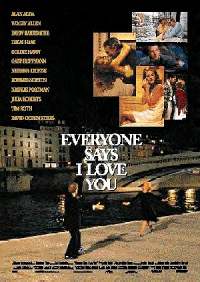 Plot: None to speak of. The film is Woody Allen’s homage to the carefree Hollywood musicals of the ‘30s. This review wasn’t really meant for the site. Instead, I wrote it as a note to The Warden, the proprietor of the superior Prisonflicks.com. We’ve been conversing for a while, and one of our running topics, ever since his review of Take the Money and Run, was Woody Allen and his movies. He found the movie much less funny than he remembered it, and I had had an identical reaction when I’d bought the film on DVD, maybe a year ago. Despite this, I still maintain some interest in Allen’s better work, and every once in a while will rent one of the films he made in the ‘90s, few of which I’d seen in a theater. I rented this particular DVD largely because it’s a musical, and I’m always interested in seeing someone try to revive this genre. I thought the fact that it was homage to the musicals of the ‘30s and ‘40s, using the music of tunesmiths like Cole Porter, would make it even more attractive to me. And to be fair, on its own the film is hardly awful, and it remains interesting for what it’s trying to do. But in relation to the rest of his work, not to mention his personal life – assuming you can separate the two – the movie provides copious evidence for why viewers like the Warden and I find Allen to be becoming an increasingly creepy and insular, even calcified, filmmaker. Please note, again, that this was not my intent when I obtained the disc. It’s just that my misgivings on these and other fronts kept growing as I watched the film.